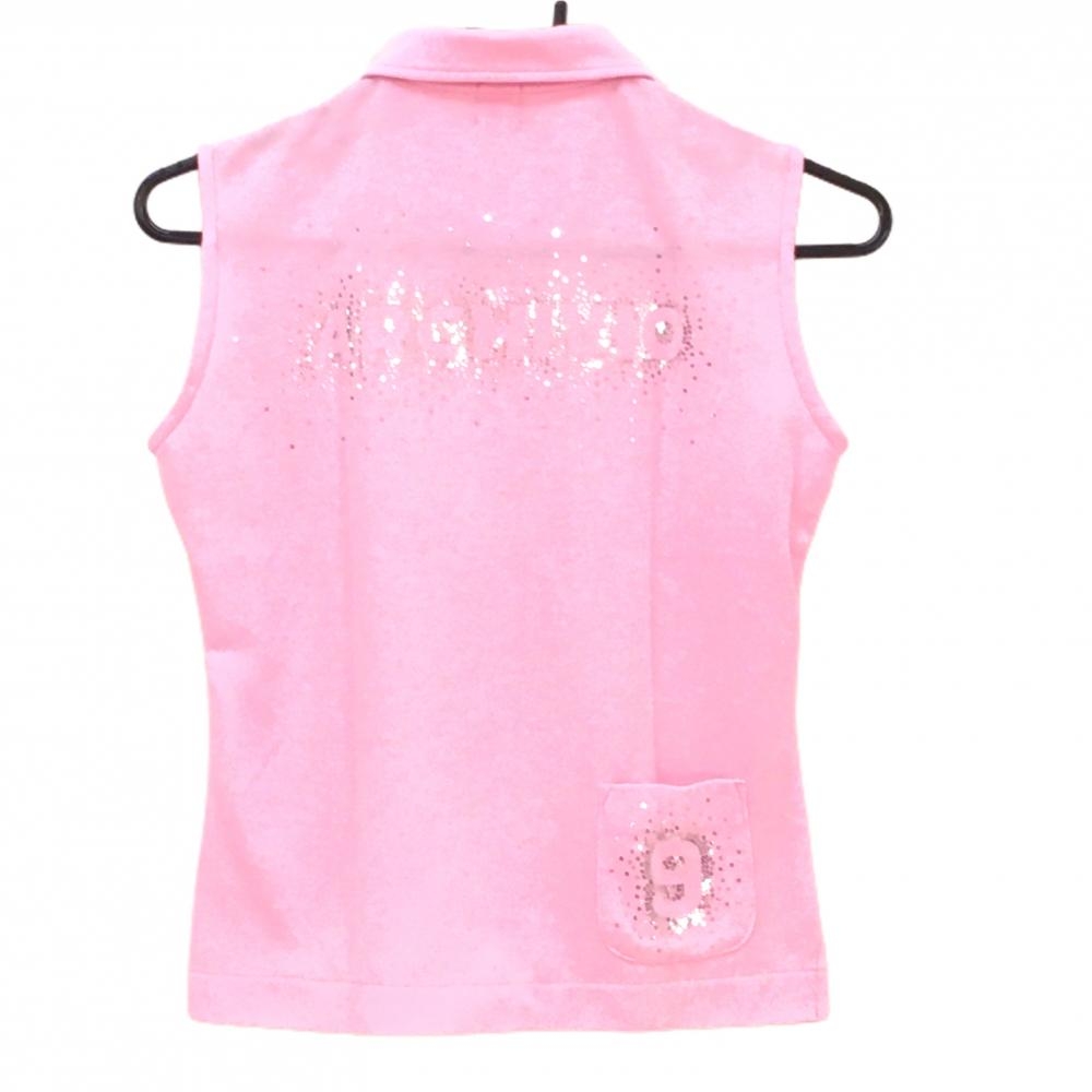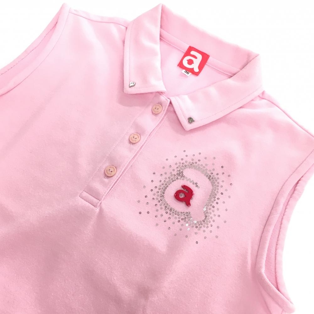 アルチビオ ノースリーブポロシャツ ピンク スパンコールロゴ レディース 36(S) ゴルフウェア archivio