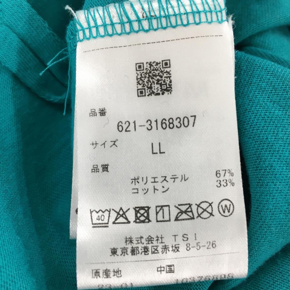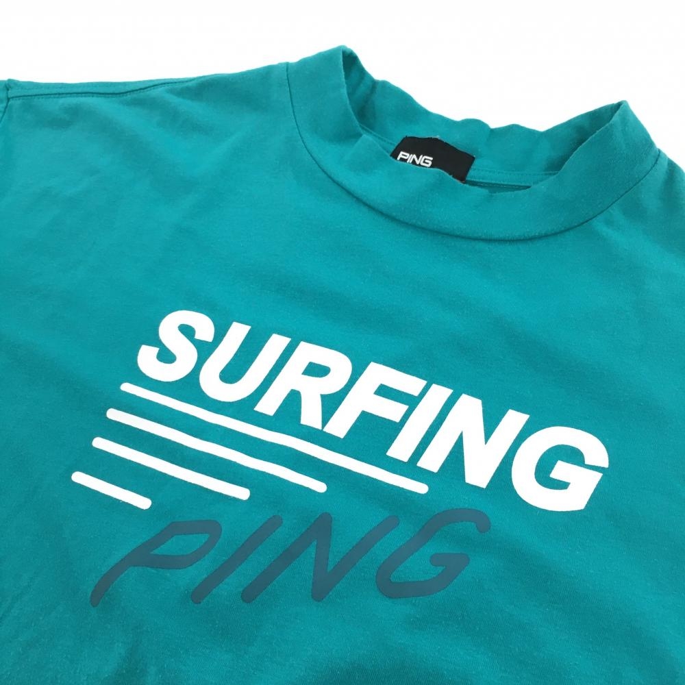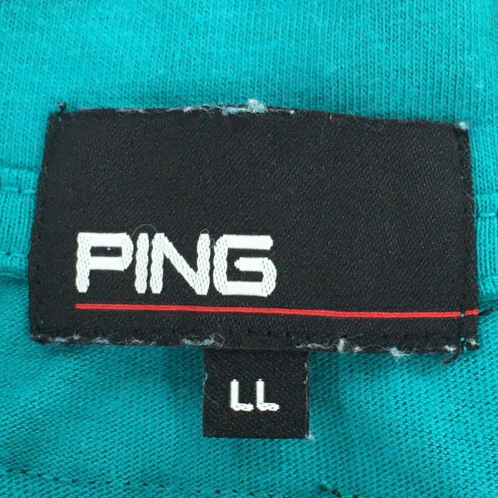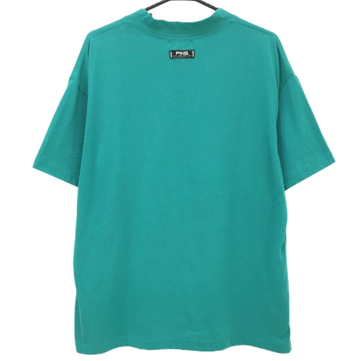 【美品】ピン 半袖ハイネックシャツ グリーン ロゴ白 フロントプリント メンズ LL ゴルフウェア 2023年モデル PING