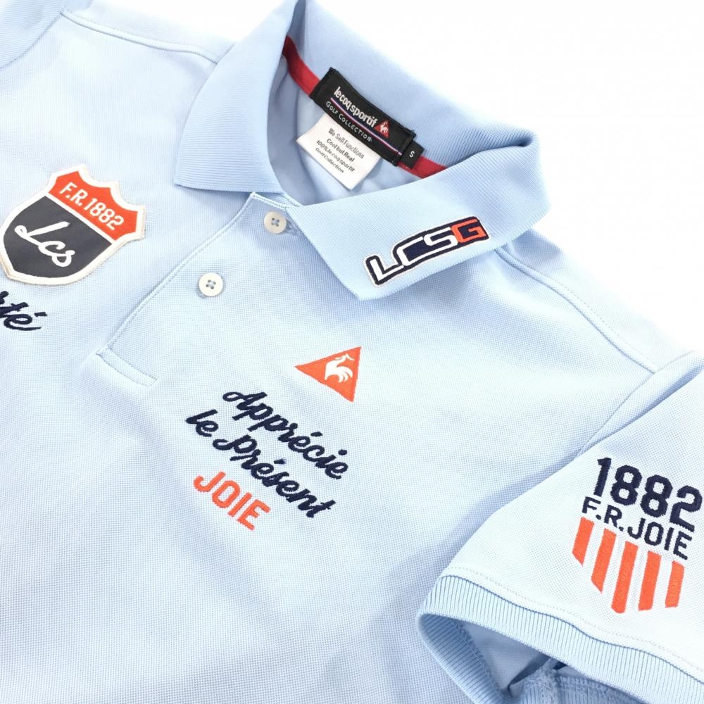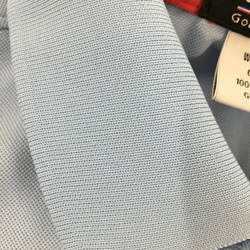 ルコックゴルフ 半袖ポロシャツ ライトブルー レッド 襟汚れ メンズ S ゴルフウェア le coq sportif
