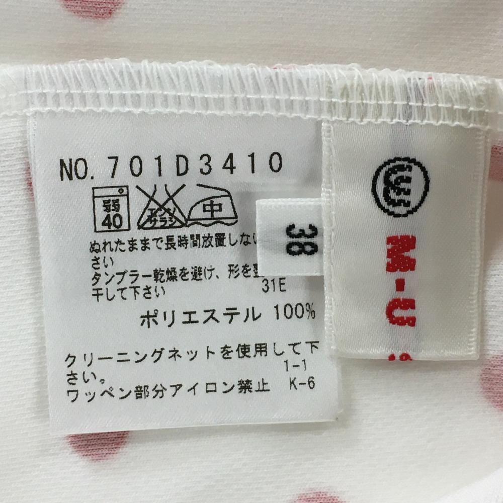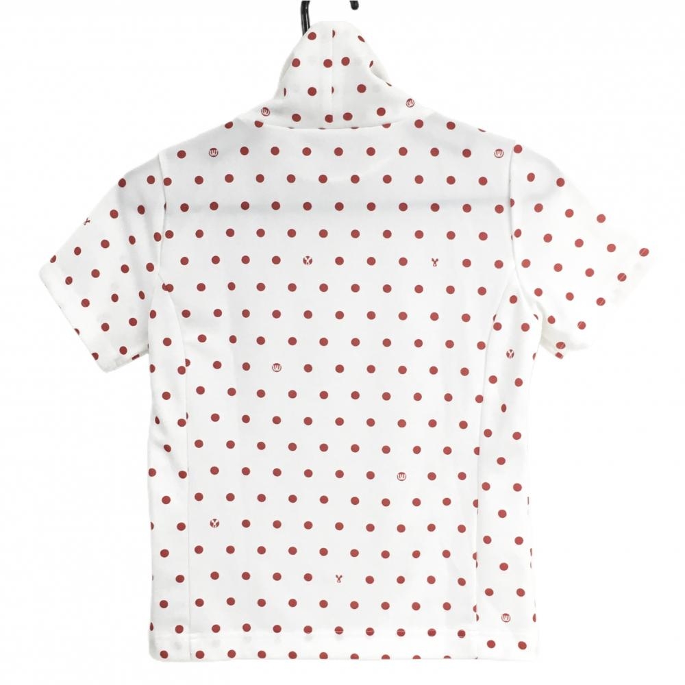 【超美品】MUスポーツ 半袖ハイネックシャツ 白×レッド ドット レディース 38(M) ゴルフウェア M・U SPORTS
