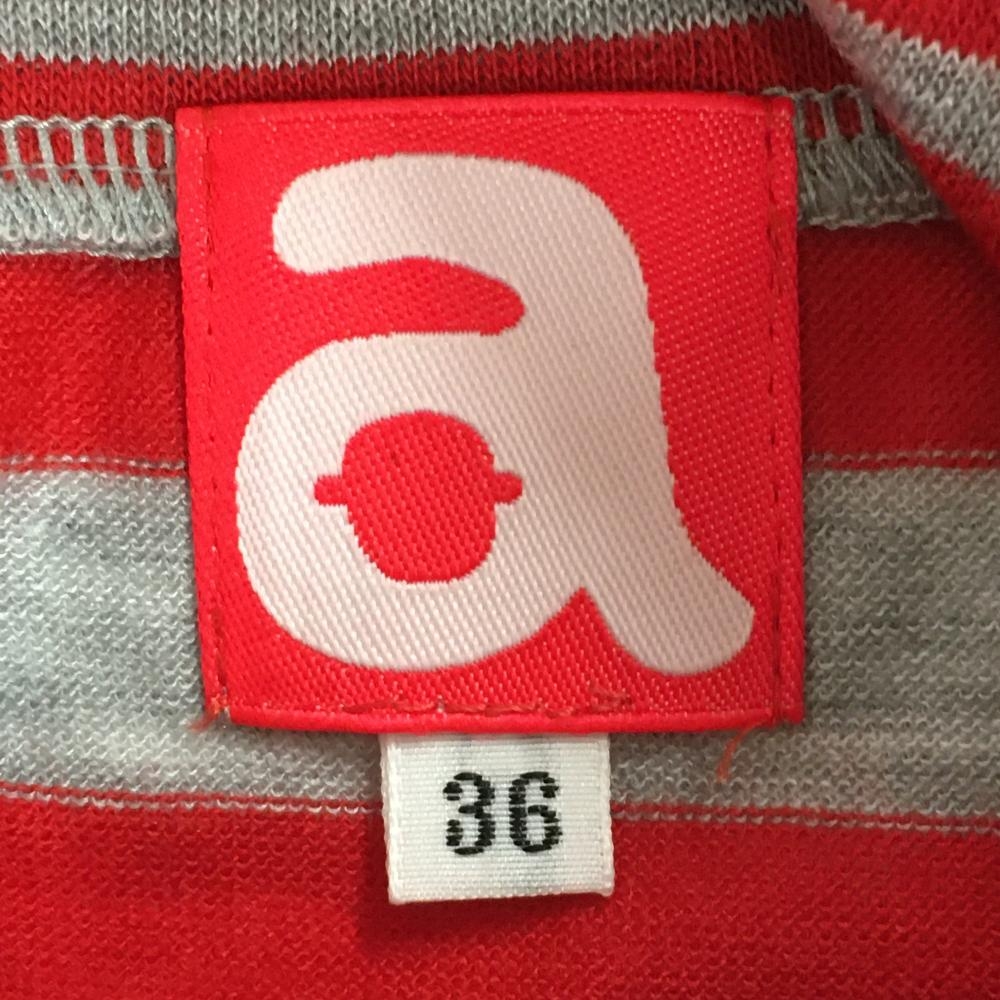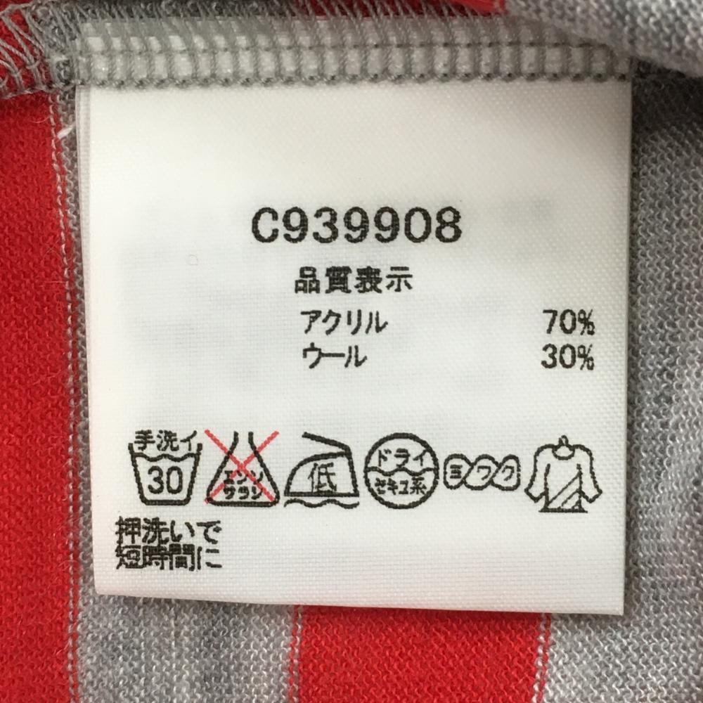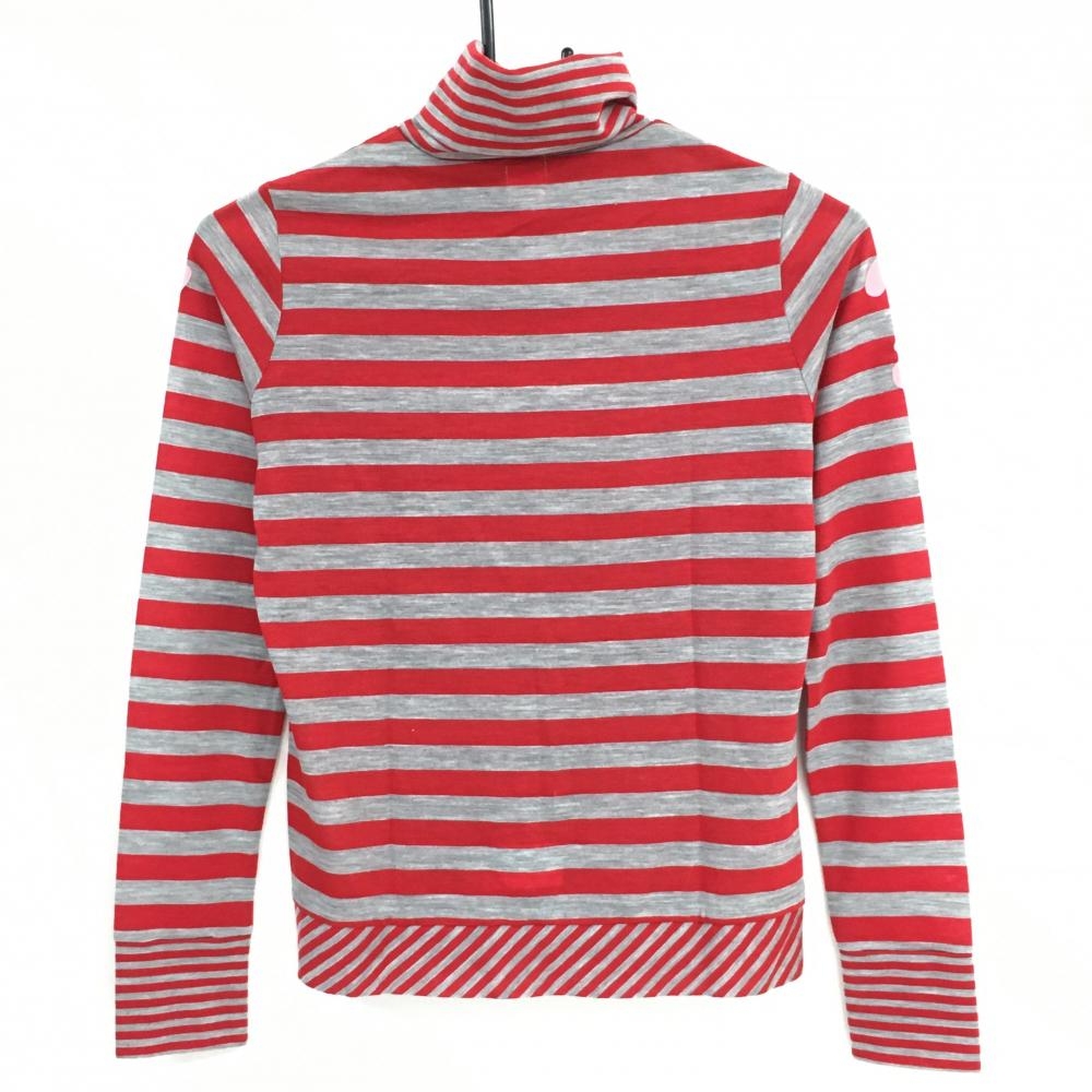 【超美品】アルチビオ 長袖ハイネックシャツ レッド×グレー ボーダー ウール混 レディース 36(S) ゴルフウェア archivio