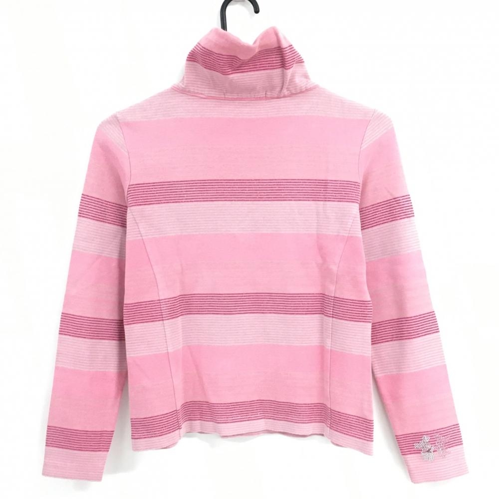 MUスポーツ 長袖ハイネックシャツ ピンク ボーダー ラメ レディース 38(S) ゴルフウェア M・U SPORTS