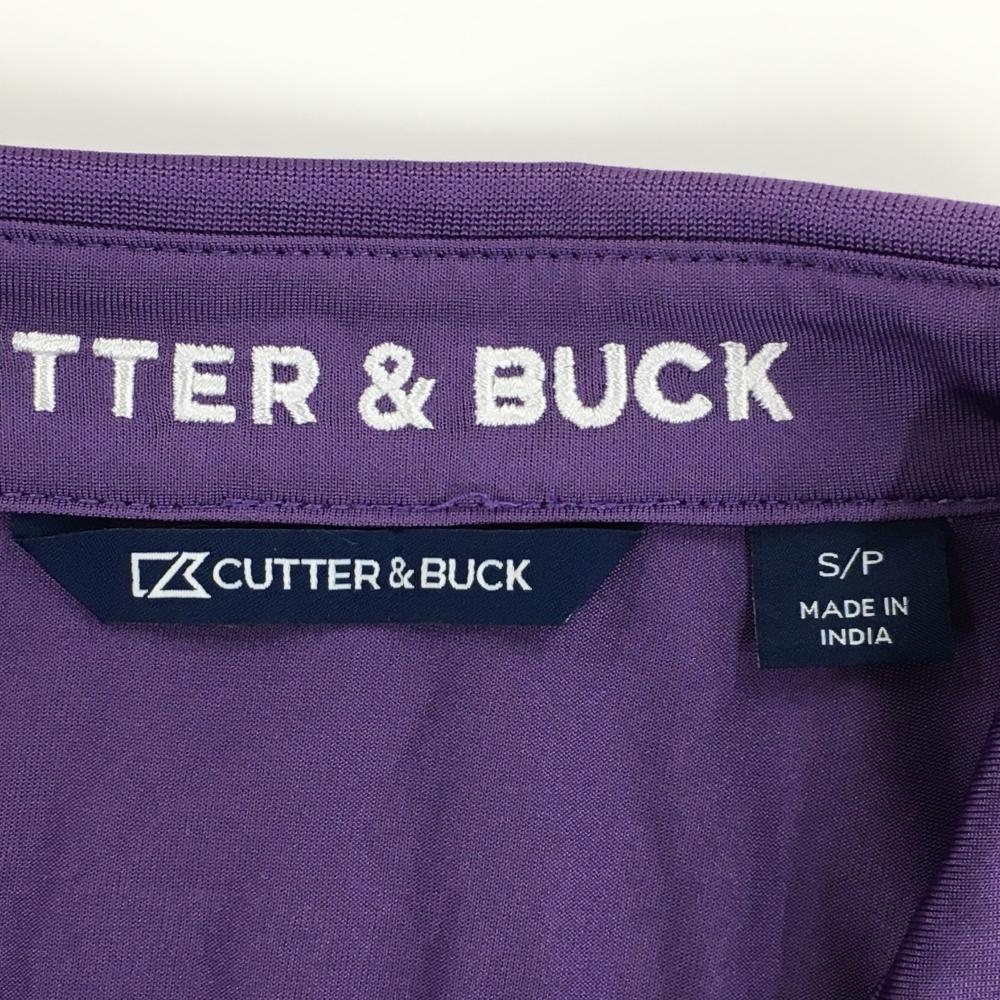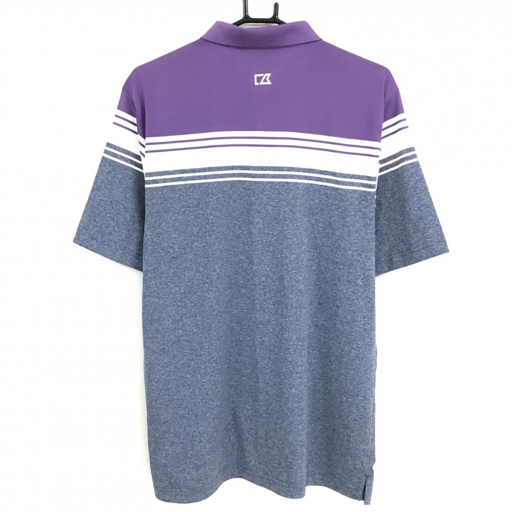 【超美品】カッターアンドバック 半袖ポロシャツ パープル×杢ネイビー 胸元ボーダー ネックロゴ メンズ S/P ゴルフウェア CUTTER&BUCK