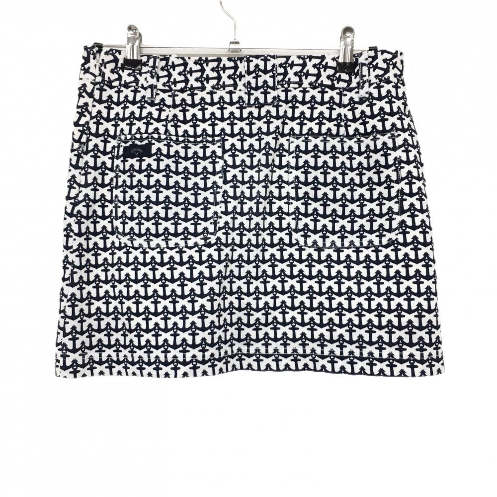【美品】キャロウェイ スカート 白×ネイビー イカリ柄 ストレッチ 内側インナーパンツ レディース M ゴルフウェア Callaway