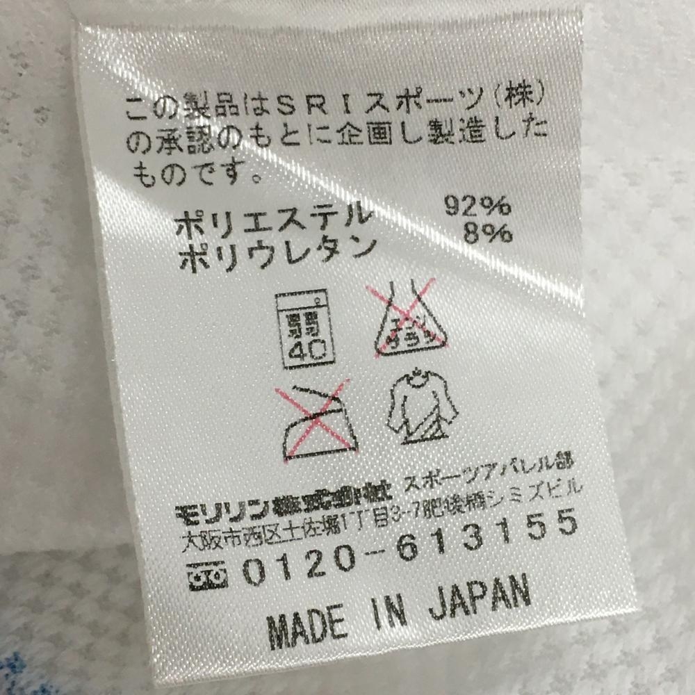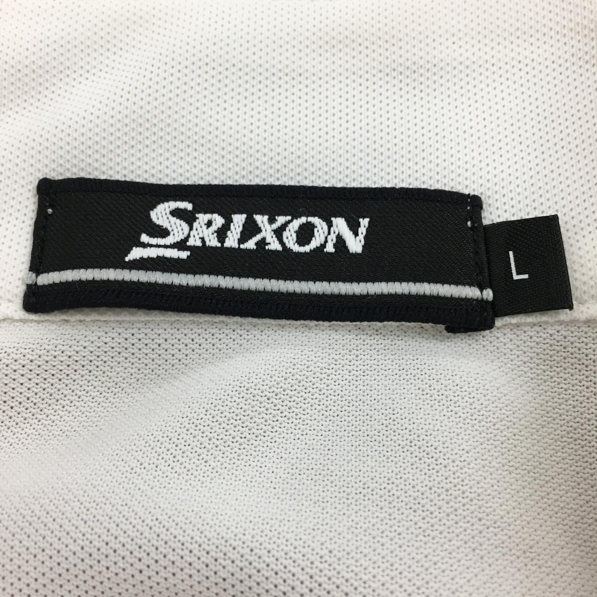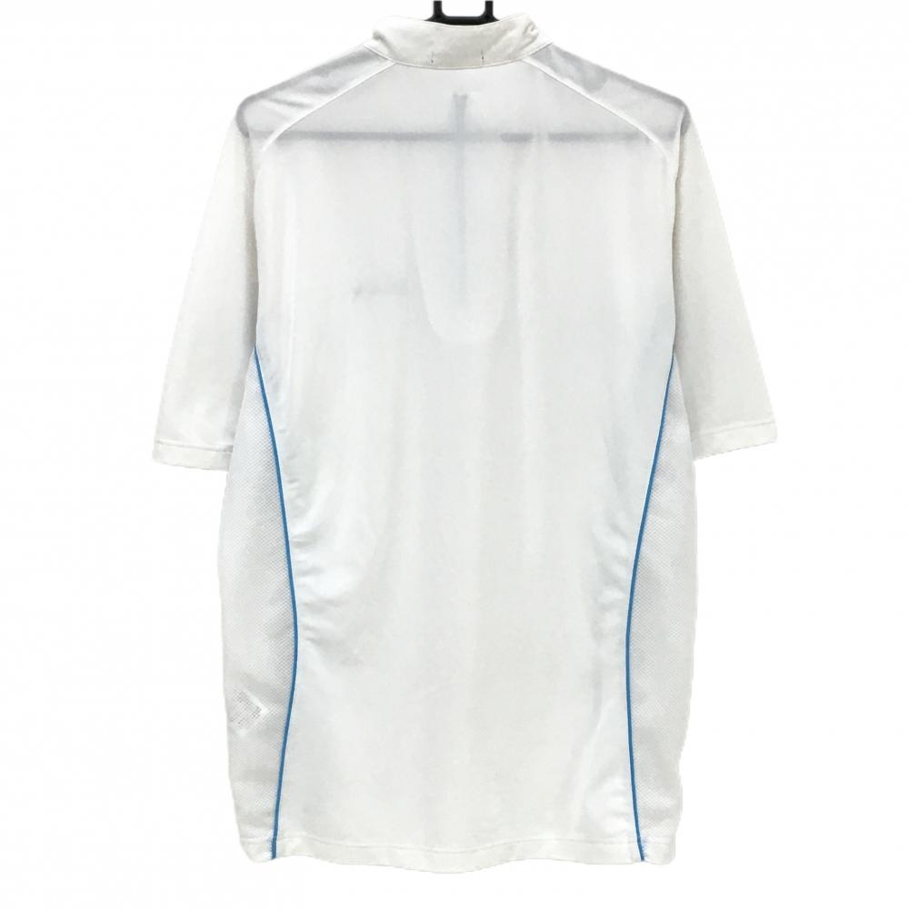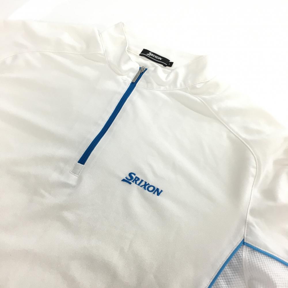【美品】スリクソン 半袖ハイネックシャツ 白×ブルー 袖下・サイドメッシュ ロゴ刺しゅう メンズ L ゴルフウェア SRIXON