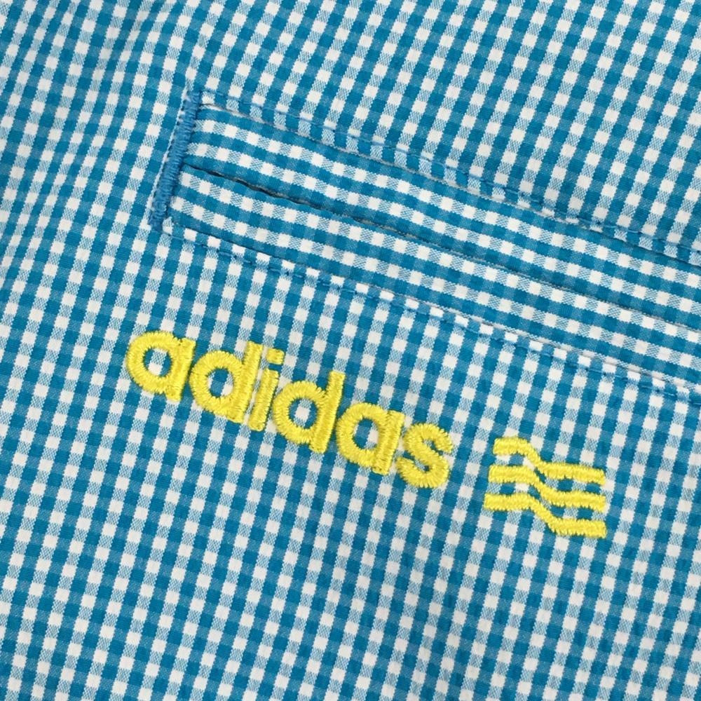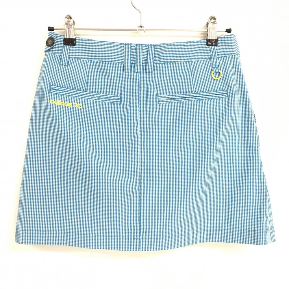 【美品】アディダス スカート ライトブルー×白 ギンガムチェック サッカー生地 レディース M/M ゴルフウェア adidas