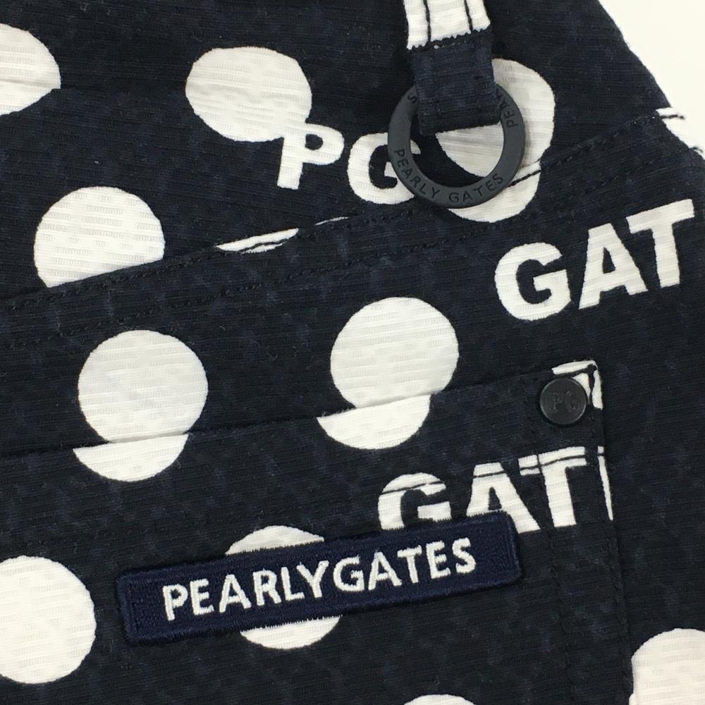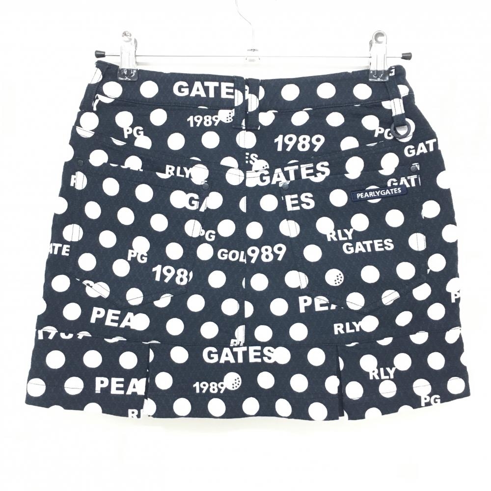 【美品】パーリーゲイツ スカート ダークネイビー×白 ドット ロゴ総柄 織生地 レディース 0(S) ゴルフウェア PEARLY GATES