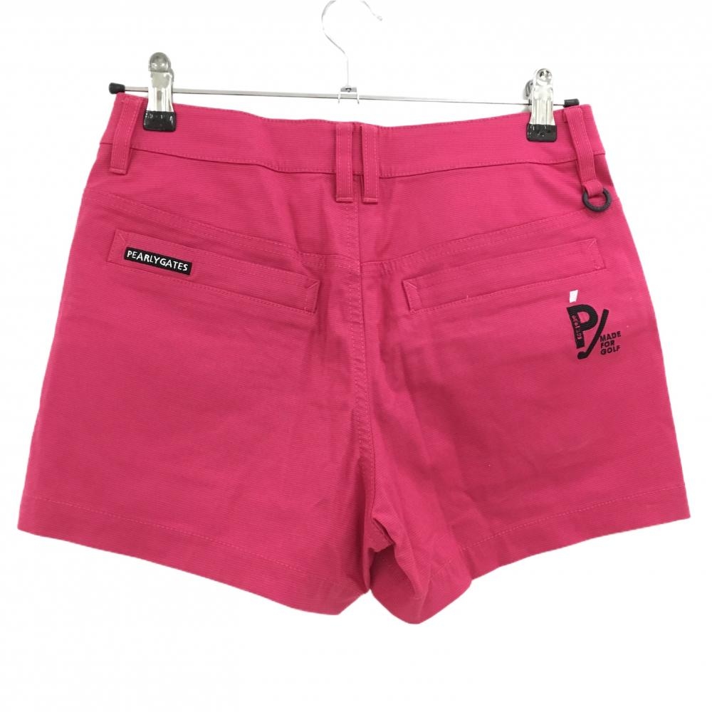 【超美品】パーリーゲイツ ショートパンツ ピンク 細ボーダー織生地 裏地ニコちゃん レディース 0(S) ゴルフウェア PEARLY GATES