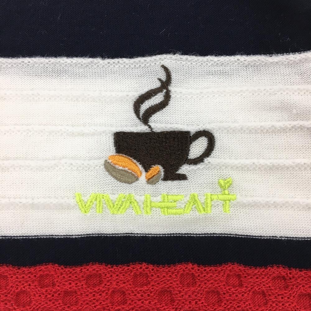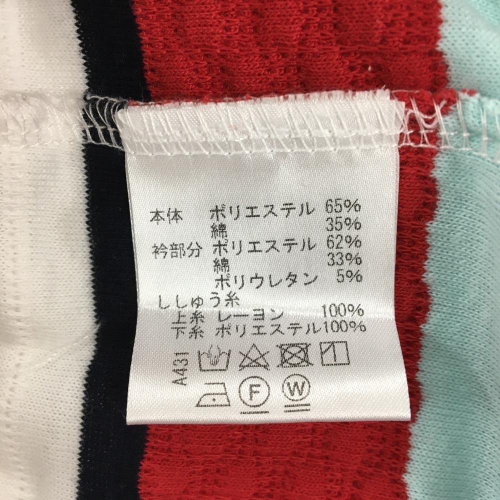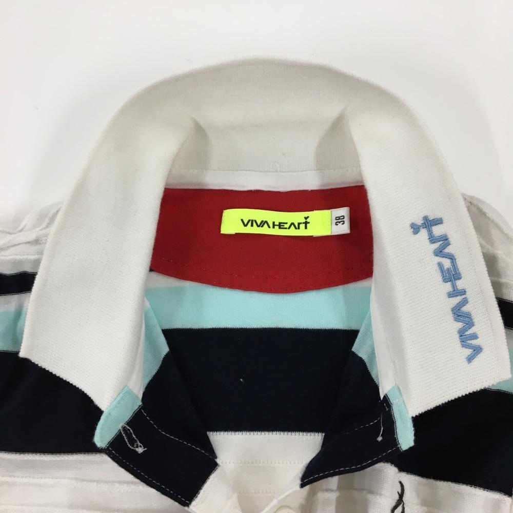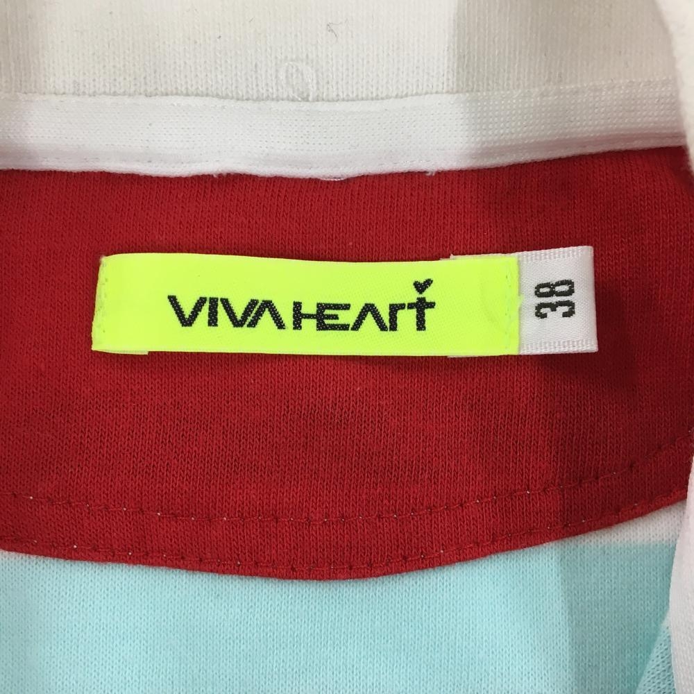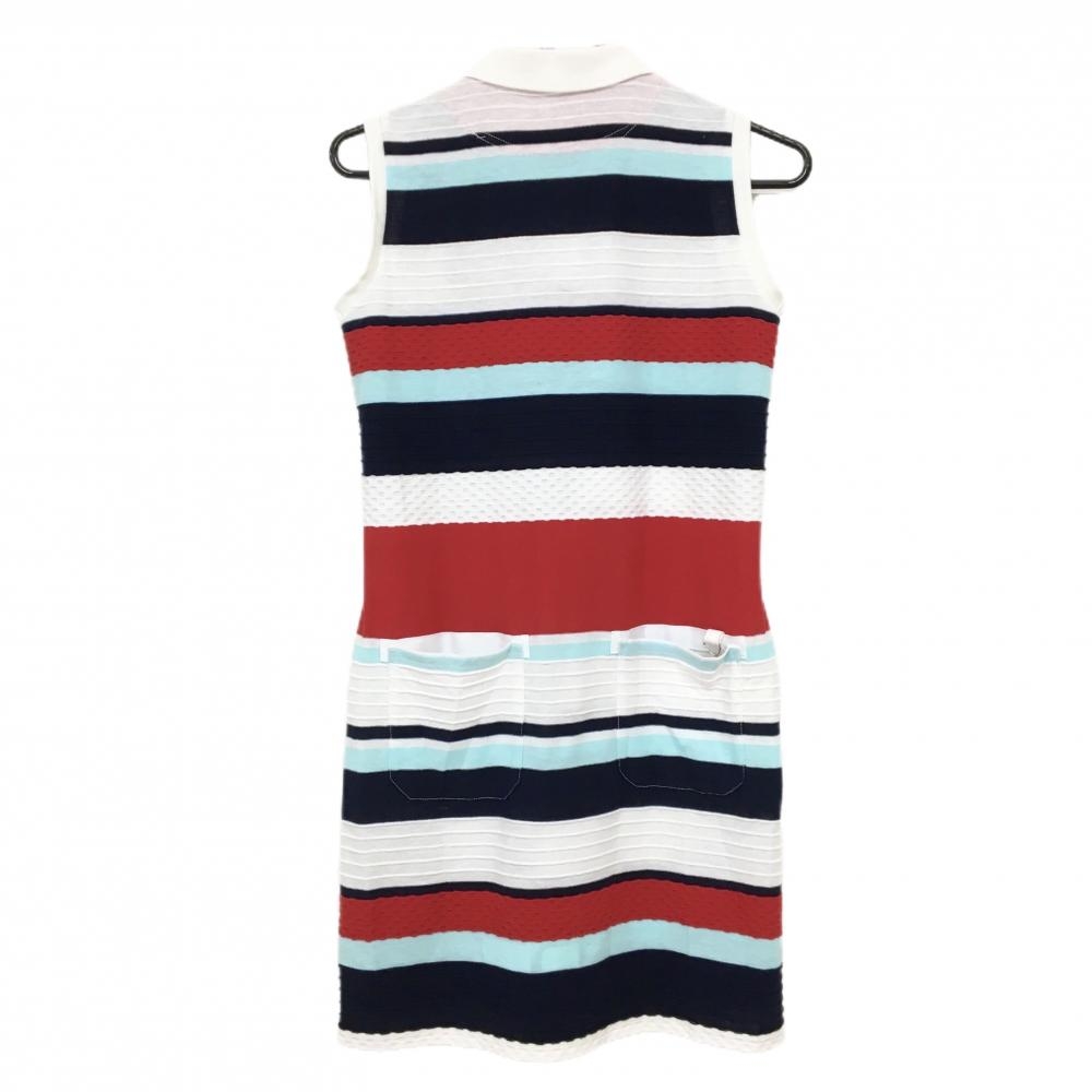 【美品】ビバハート ノースリーブワンピース 白×レッド×ネイビー ボーダー 織生地 レディース 38(S) ゴルフウェア VIVA HEART