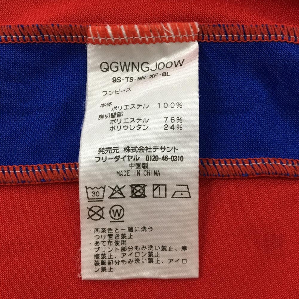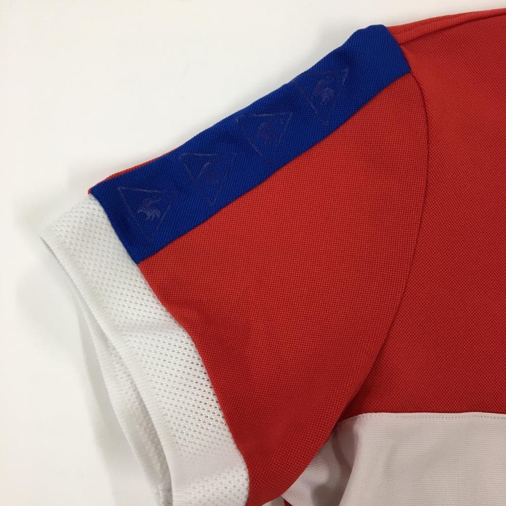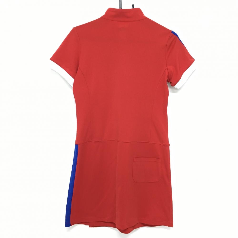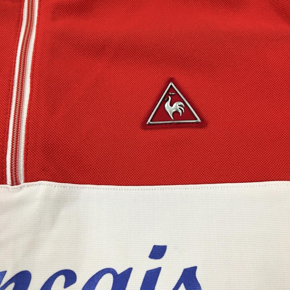 ルコック 半袖ハイネックワンピース レッド×白 ロゴワッペン ハーフジップ レディース L ゴルフウェア le coq sportif