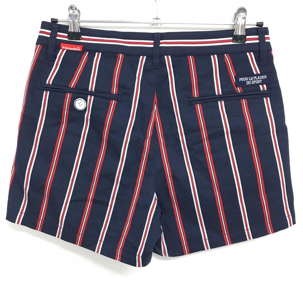 【超美品】ルコック ショートパンツ ネイビー×レッド ストライプ レディース 11 ゴルフウェア le coq sportif