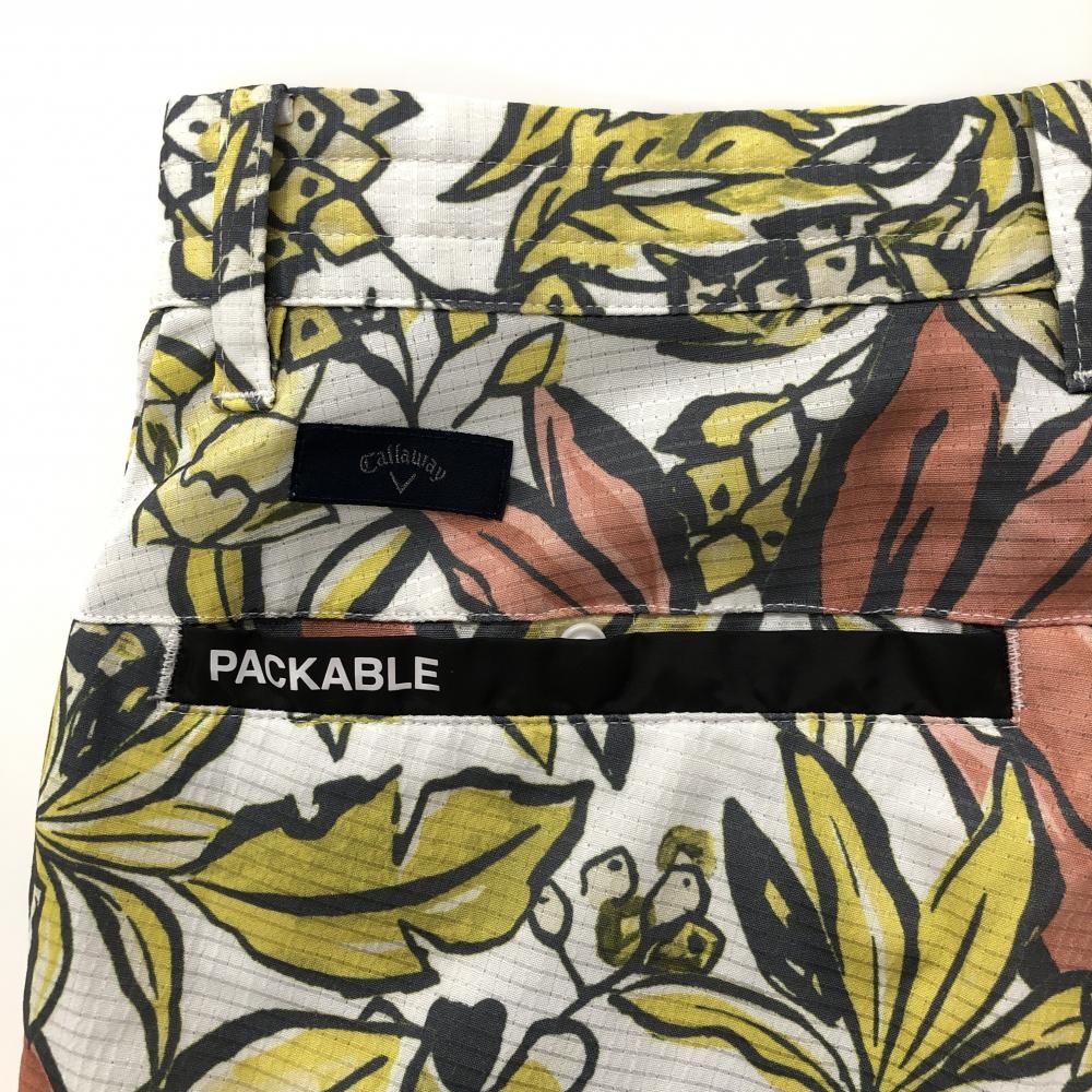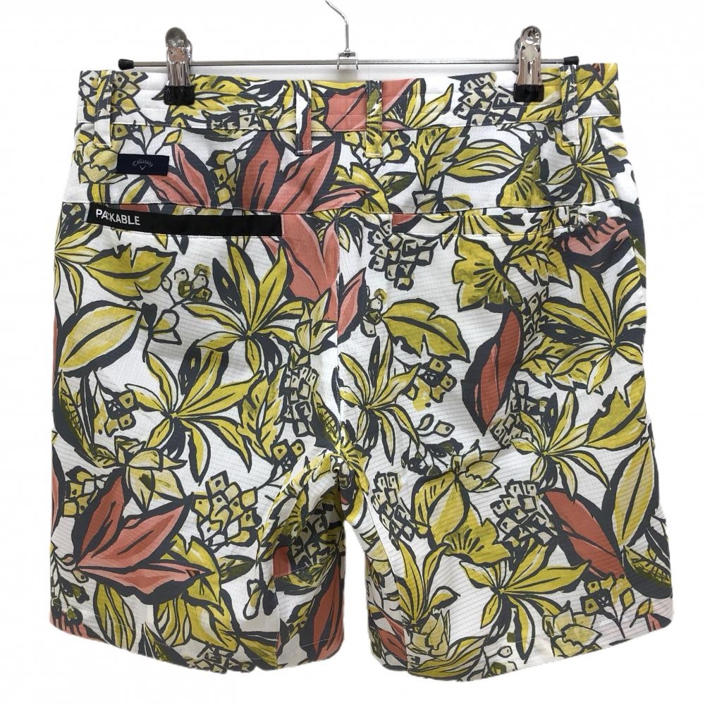 【超美品】キャロウェイ ハーフパンツ 白×イエロー 総柄 メッシュ調 メンズ M ゴルフウェア Callaway