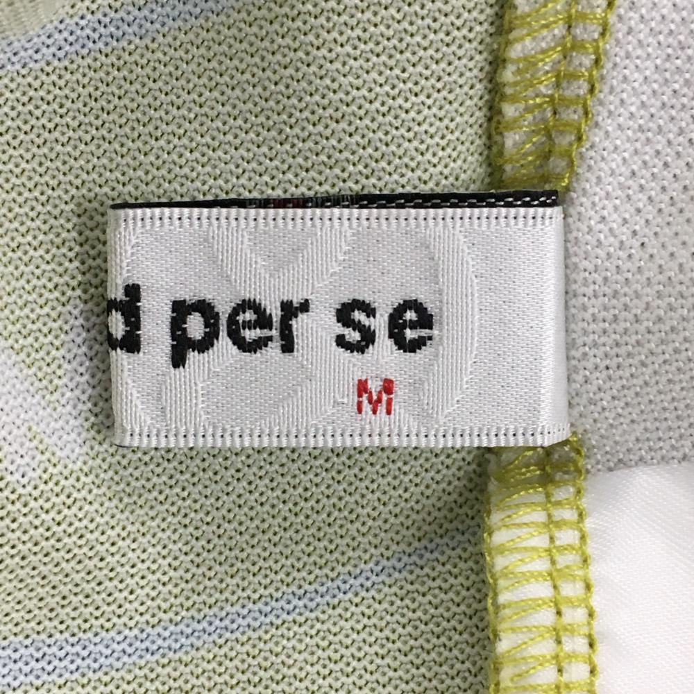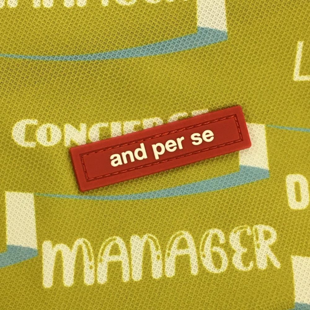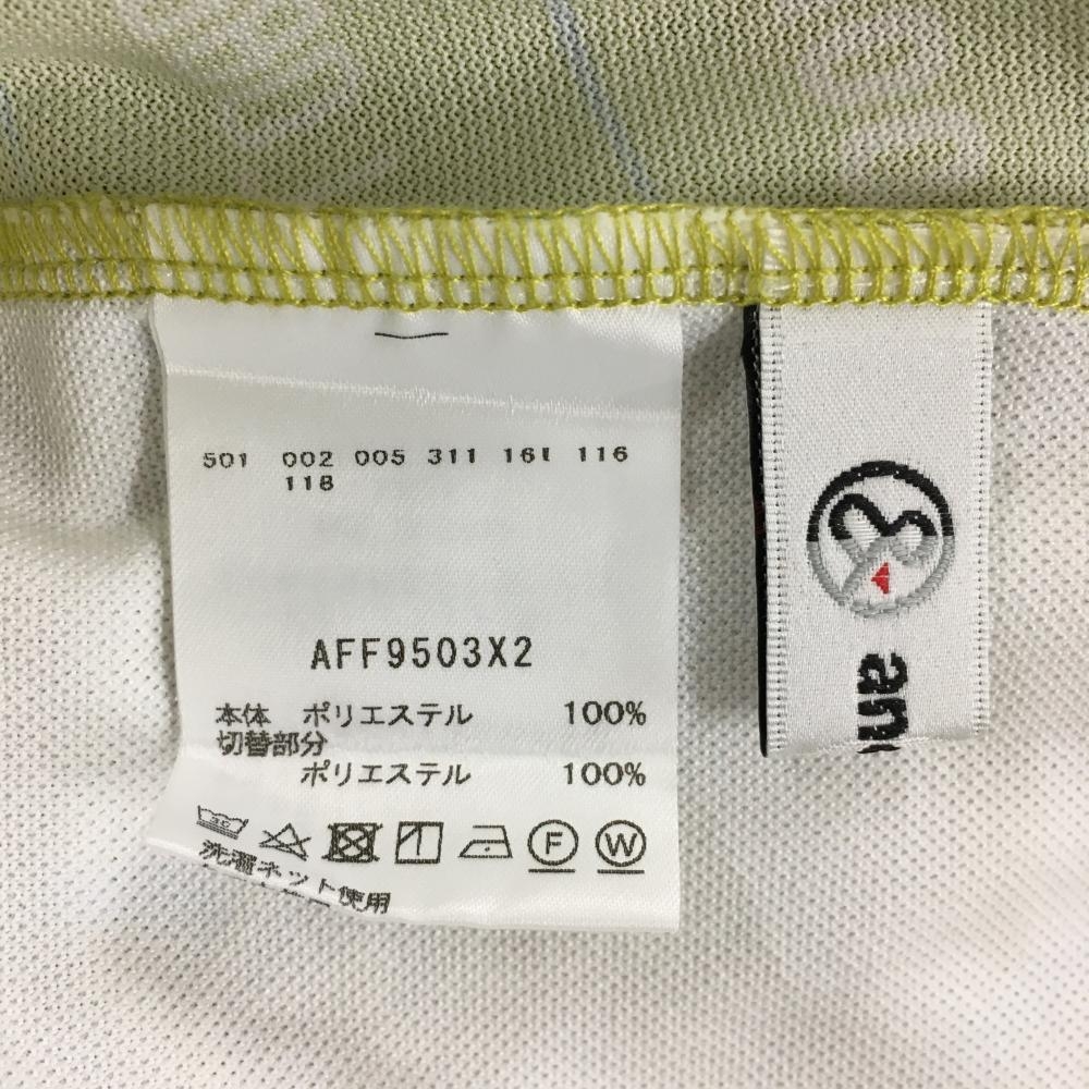 【超美品】アンパスィ 半袖ハイネックシャツ ライトカーキ系×ライトブルー×白 総柄 レディース M ゴルフウェア 2023年モデル and per se