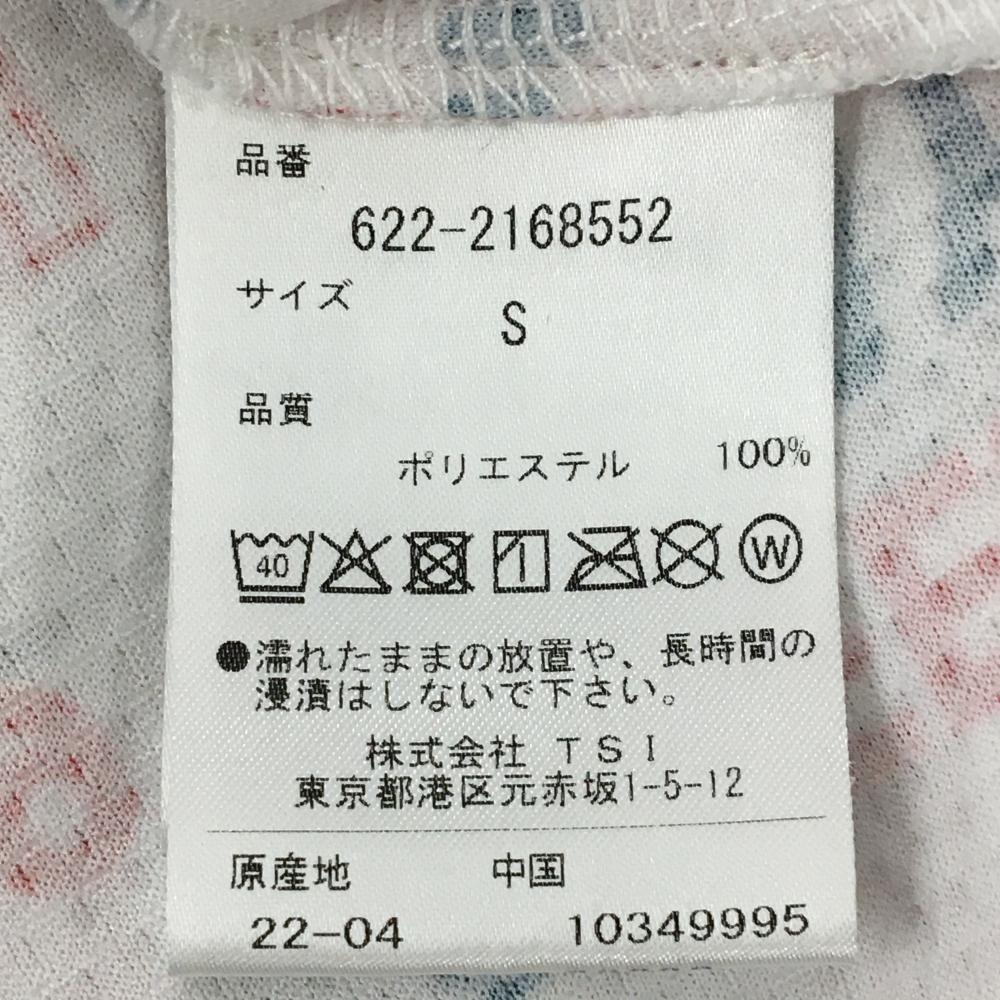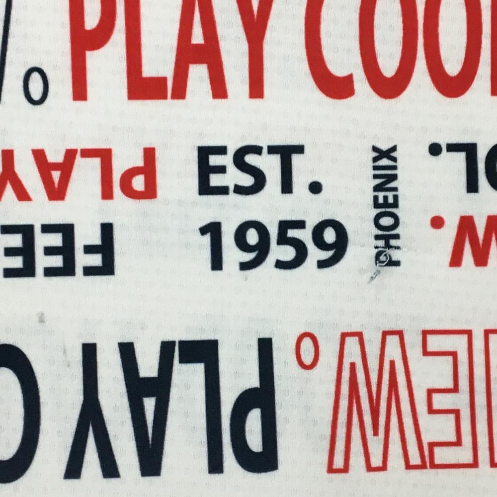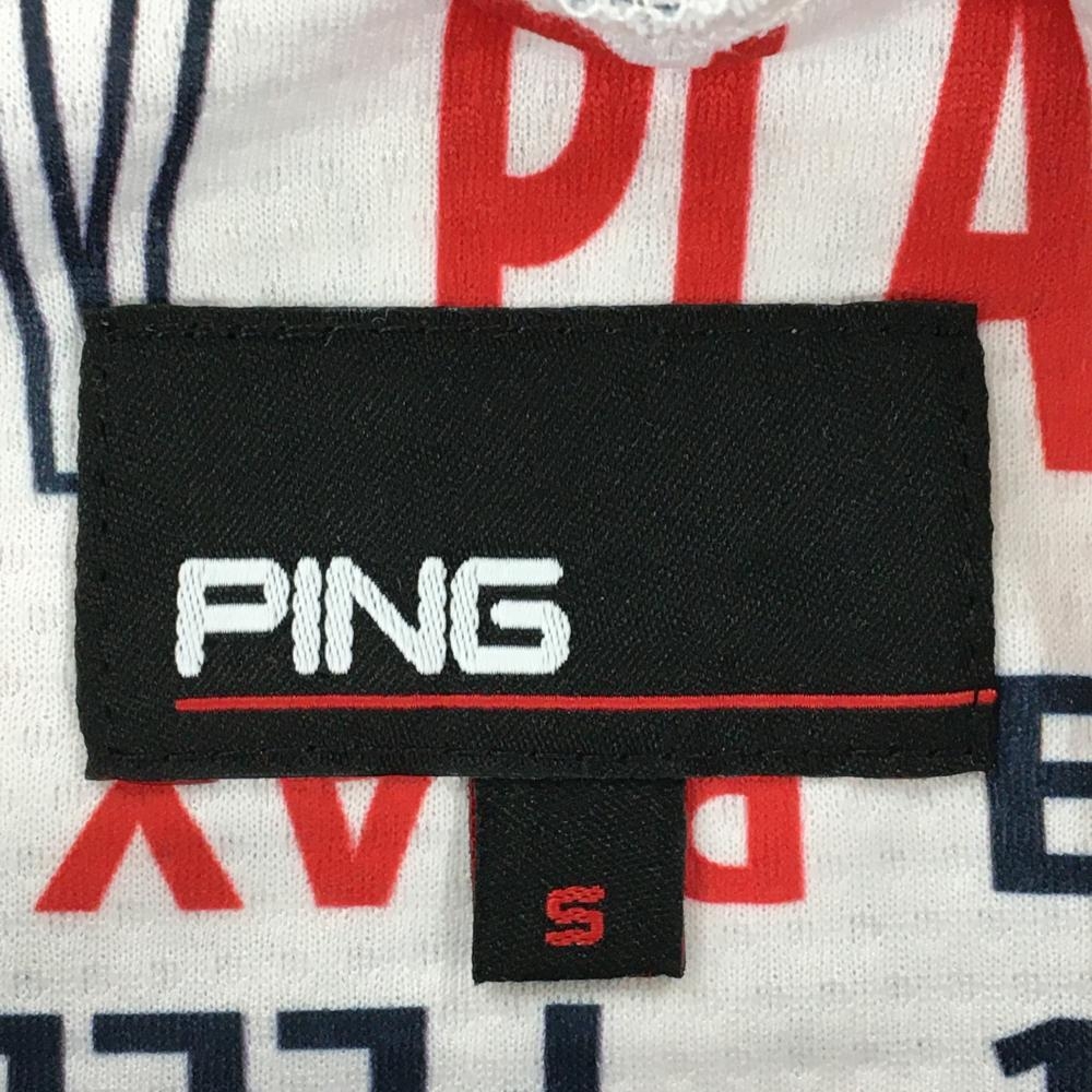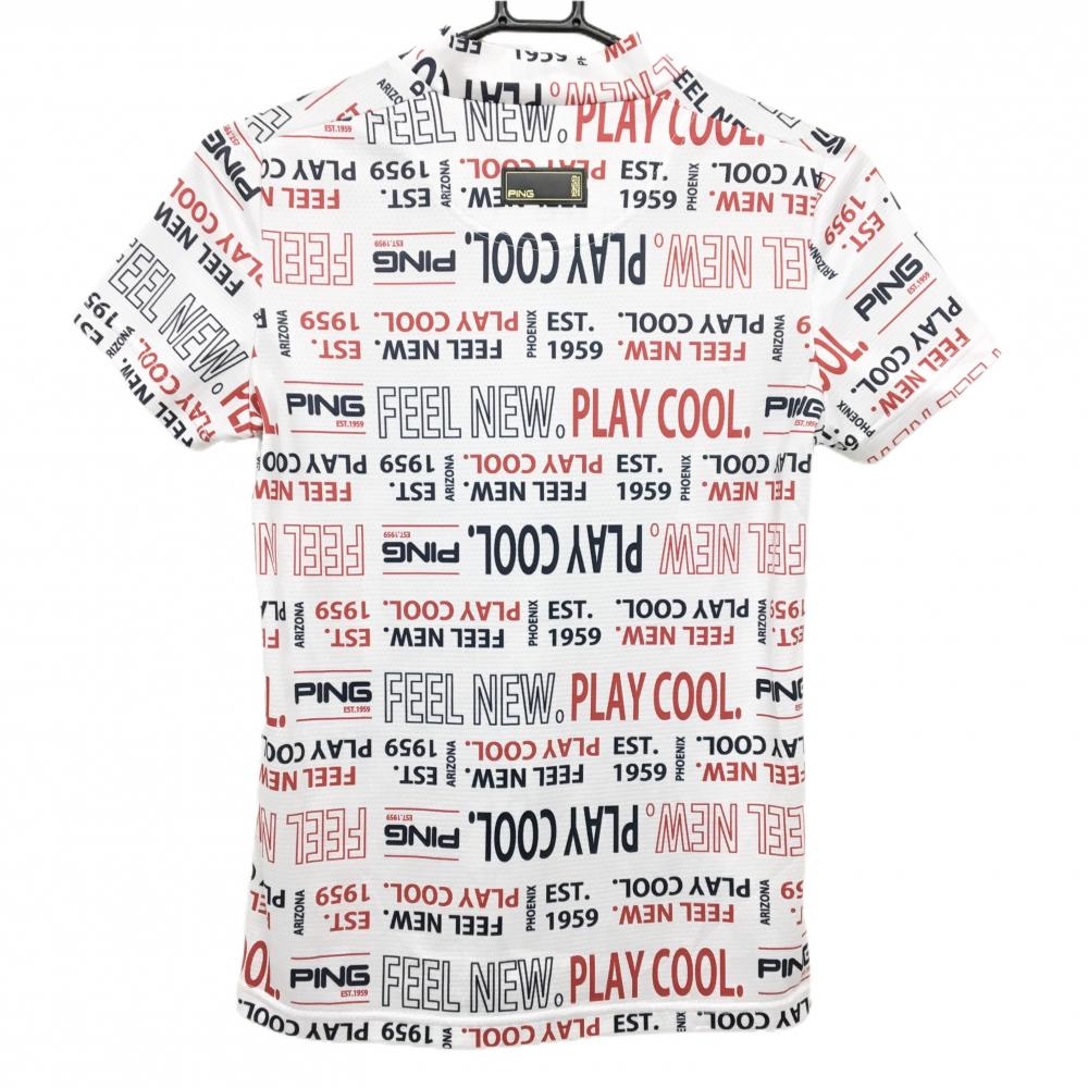 ピン 半袖ハイネックシャツ 白×ネイビー×レッド 英字総柄 レディース S ゴルフウェア PING