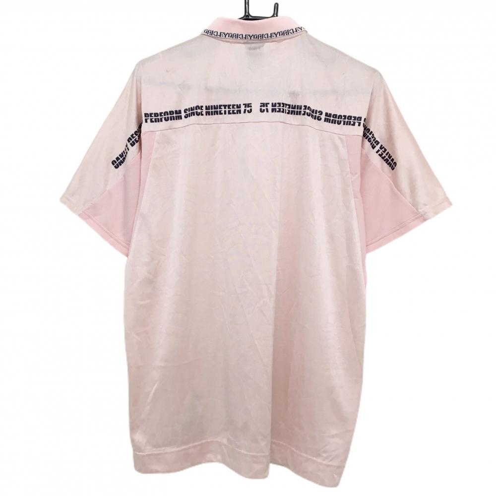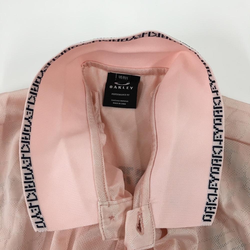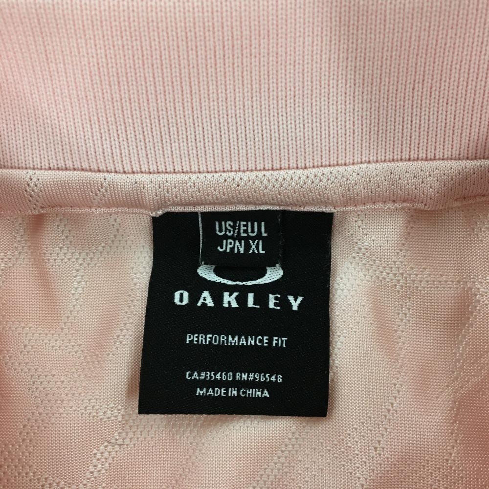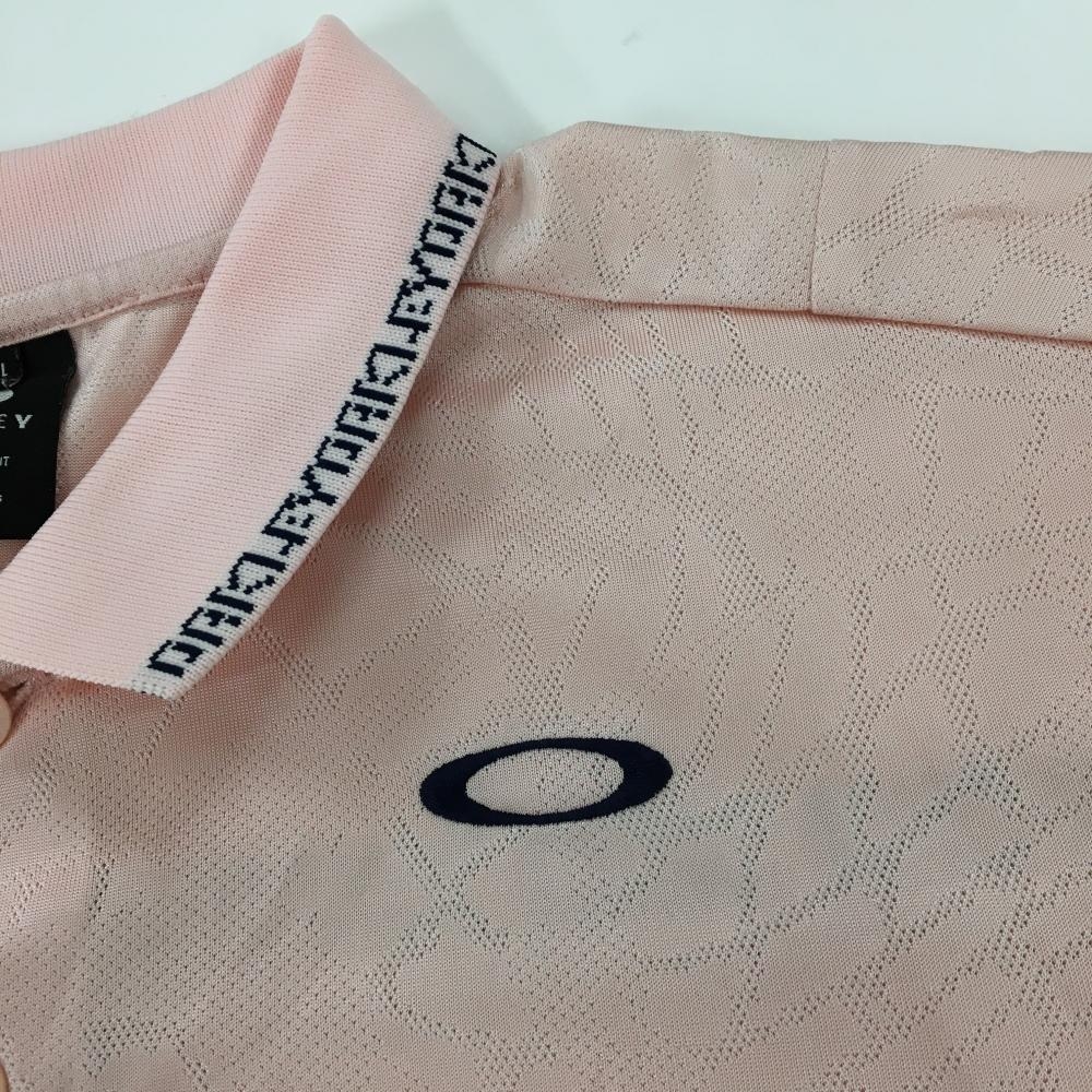 【美品】オークリー 半袖ポロシャツ ピンク×黒 総柄地模様 襟ロゴライン メンズ XL ゴルフウェア Oakley