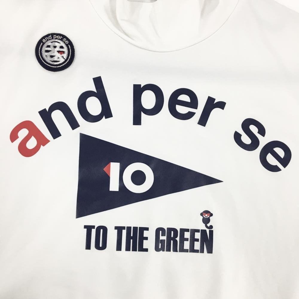 【美品】アンパスィ 半袖ハイネックシャツ 白×ネイビー ストレッチ レディース M ゴルフウェア and per se