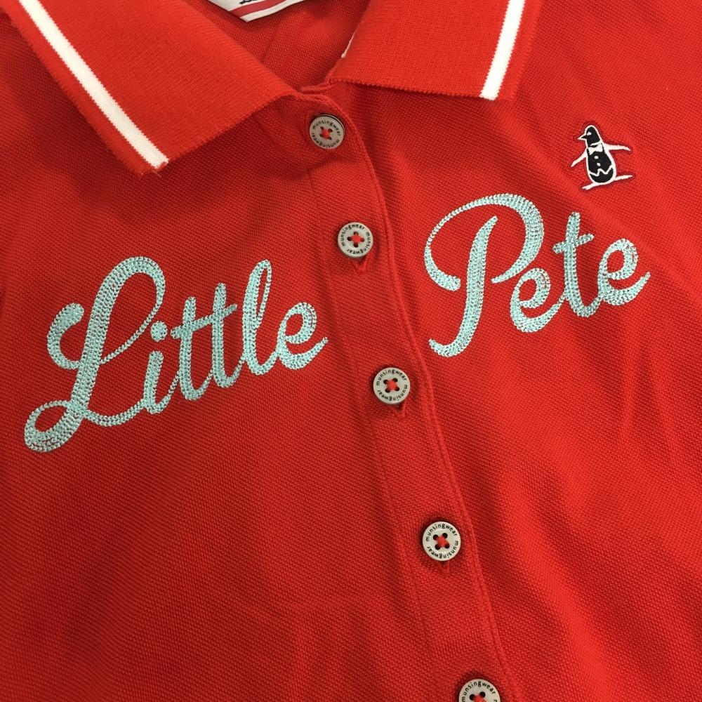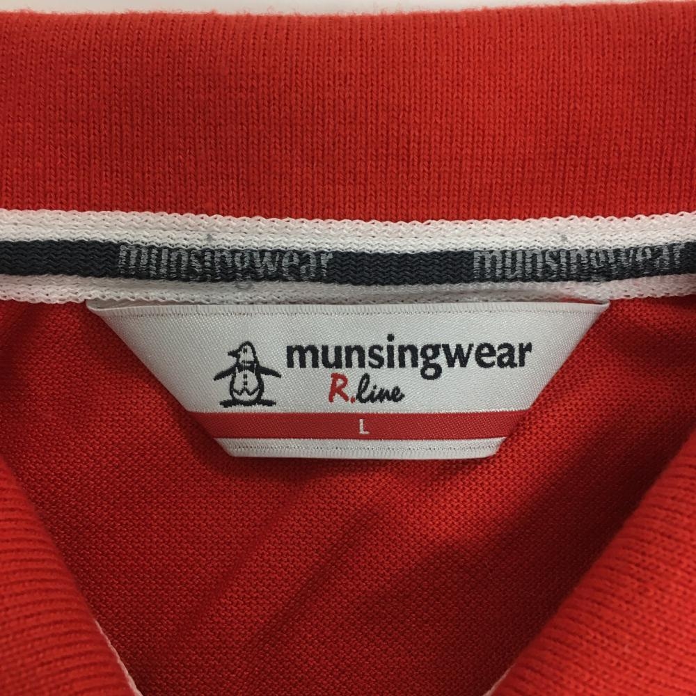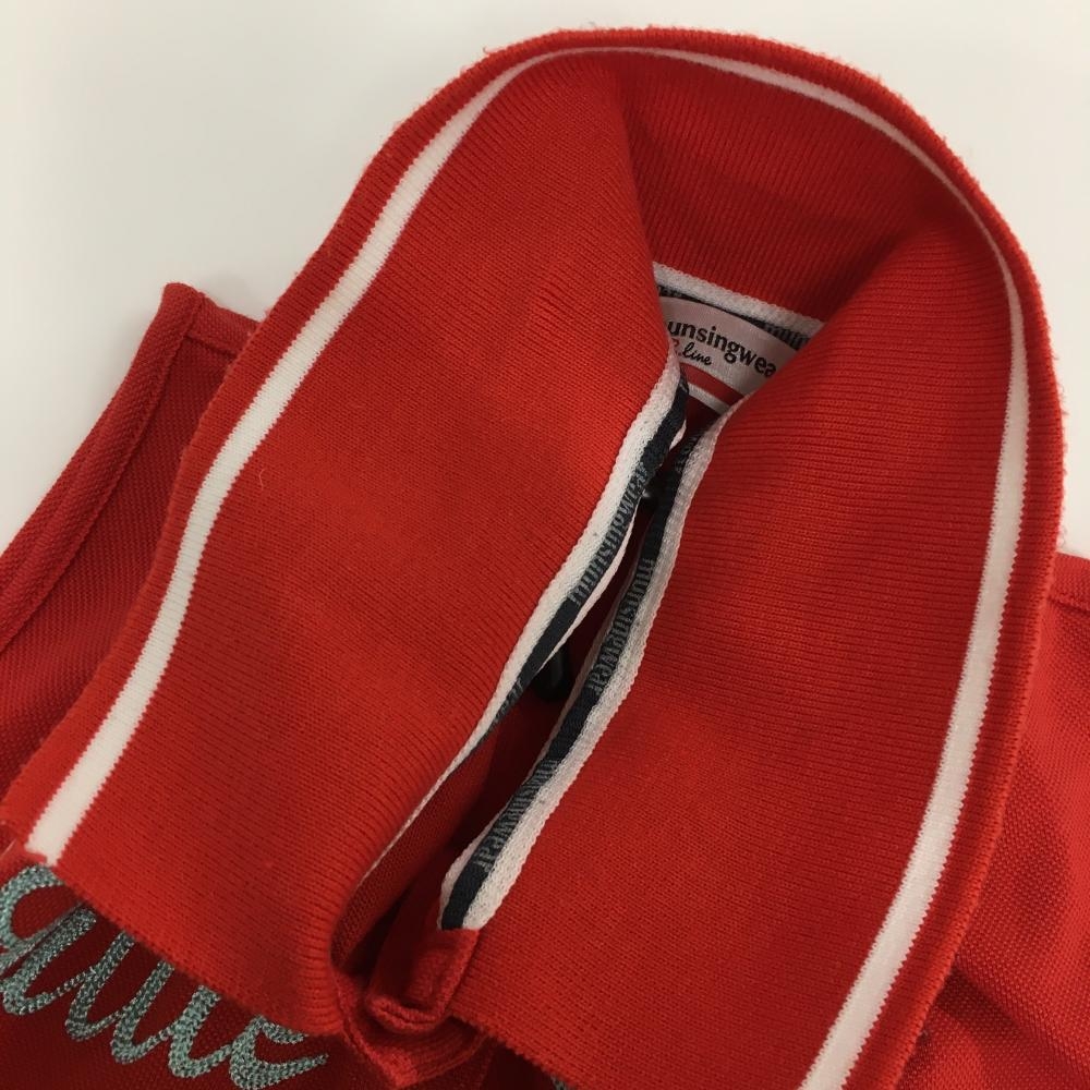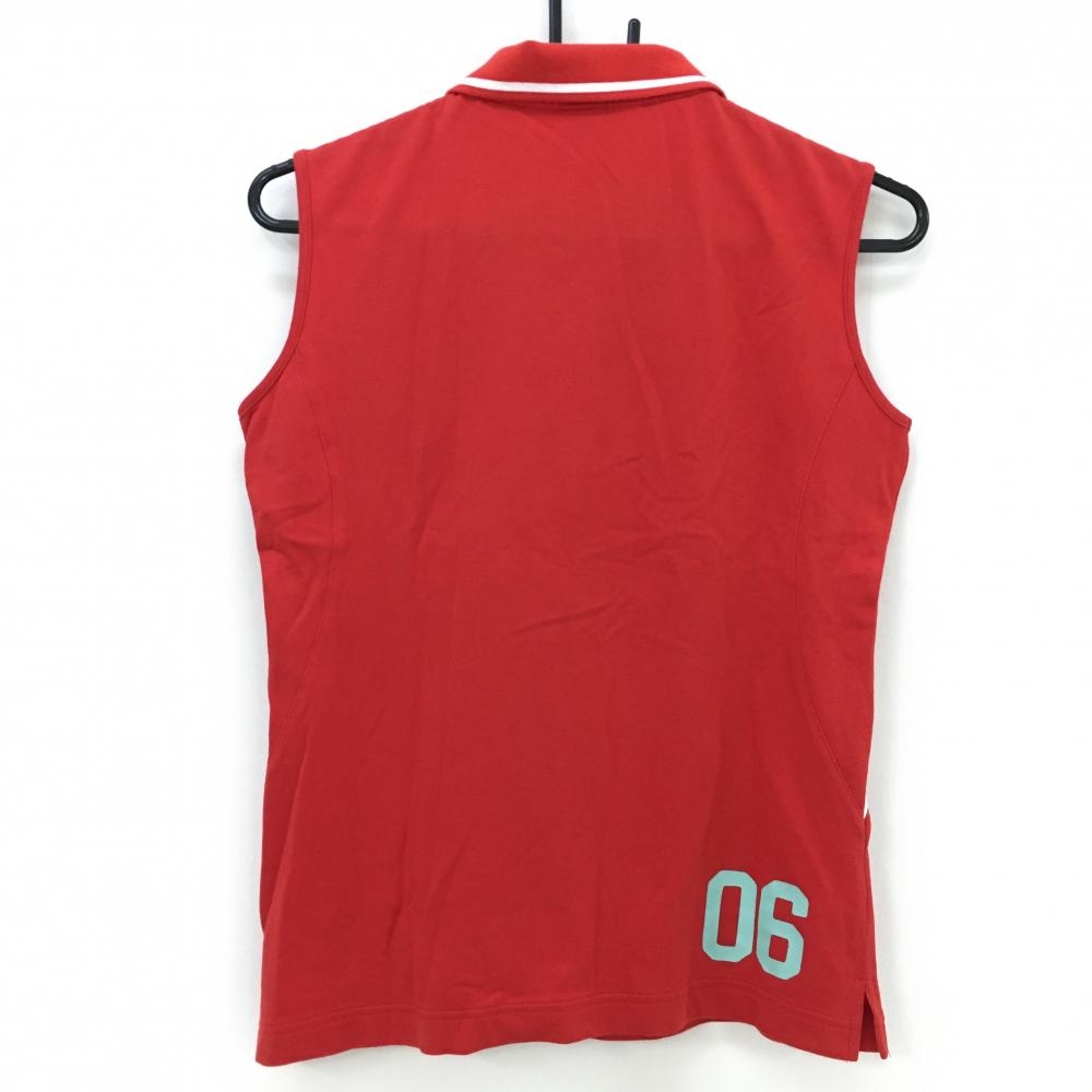 【美品】マンシングウェア ノースリーブポロシャツ レッド×白 胸元ロゴ レディース L ゴルフウェア Munsingwear