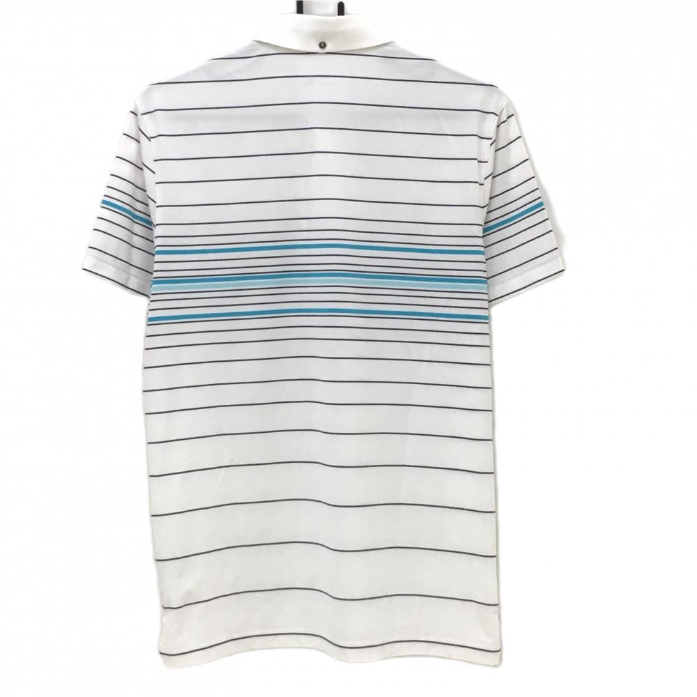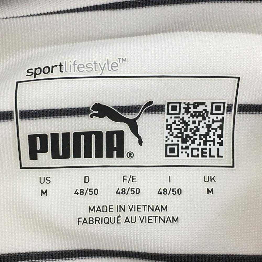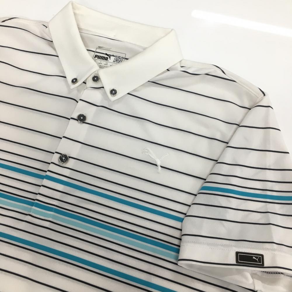 【美品】プーマ 半袖ポロシャツ 白×黒 ボーダー ロゴ刺しゅう ボタンダウン メンズ US-M ゴルフウェア PUMA