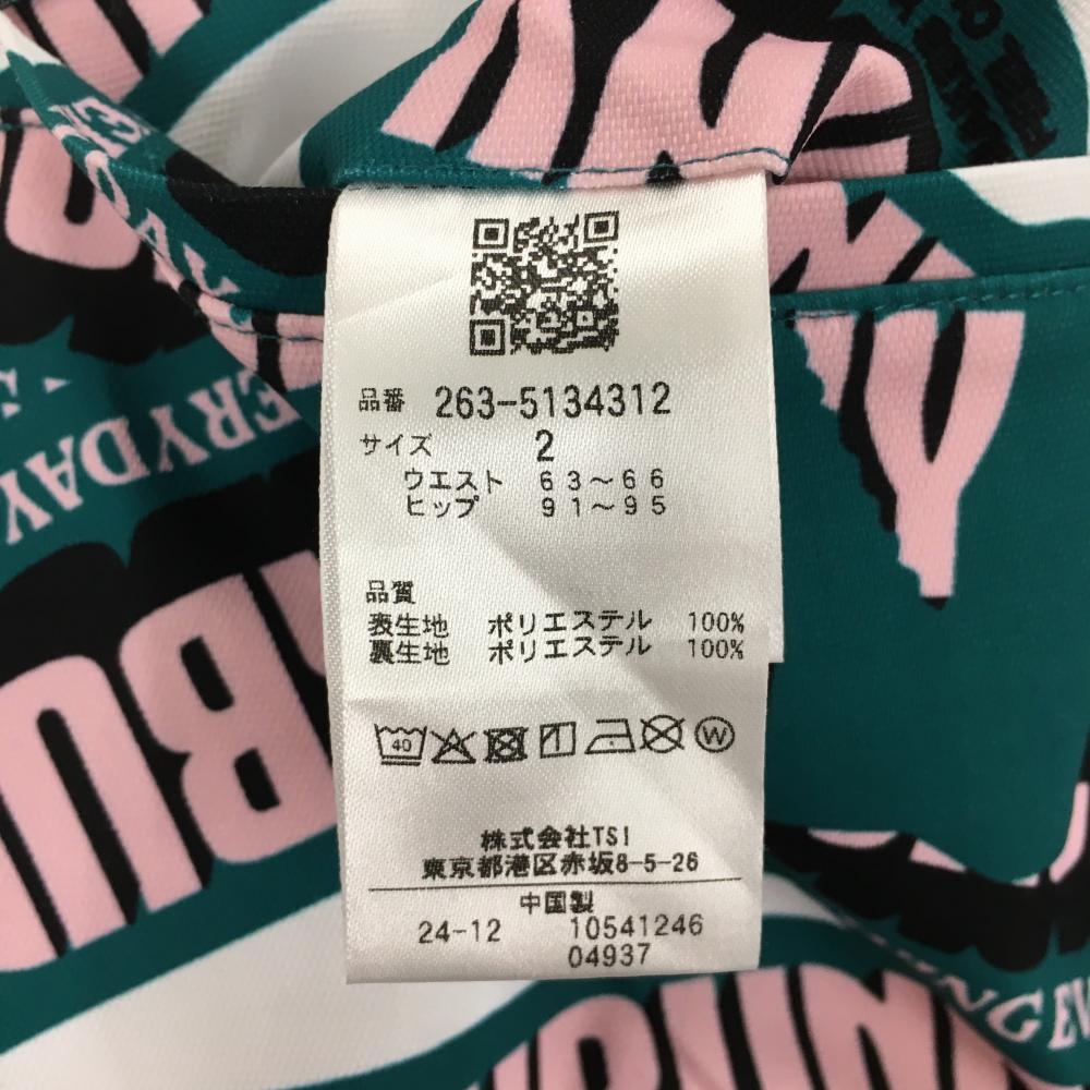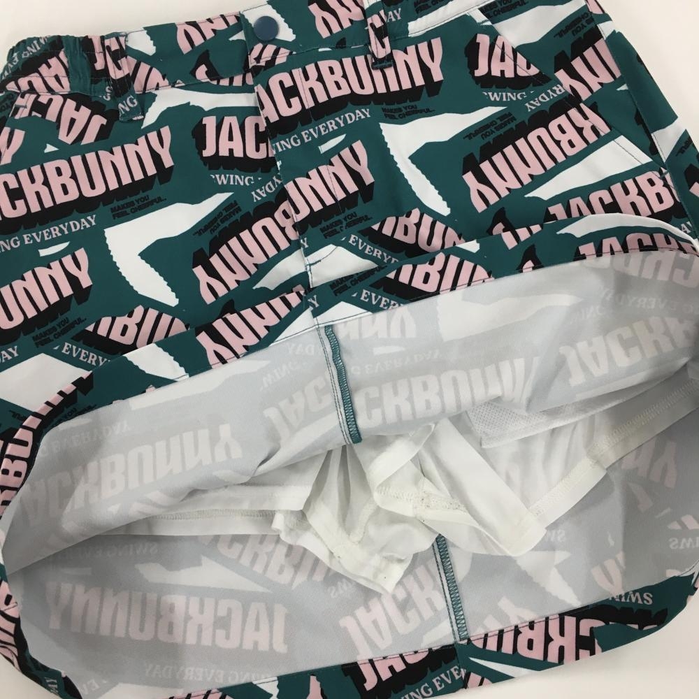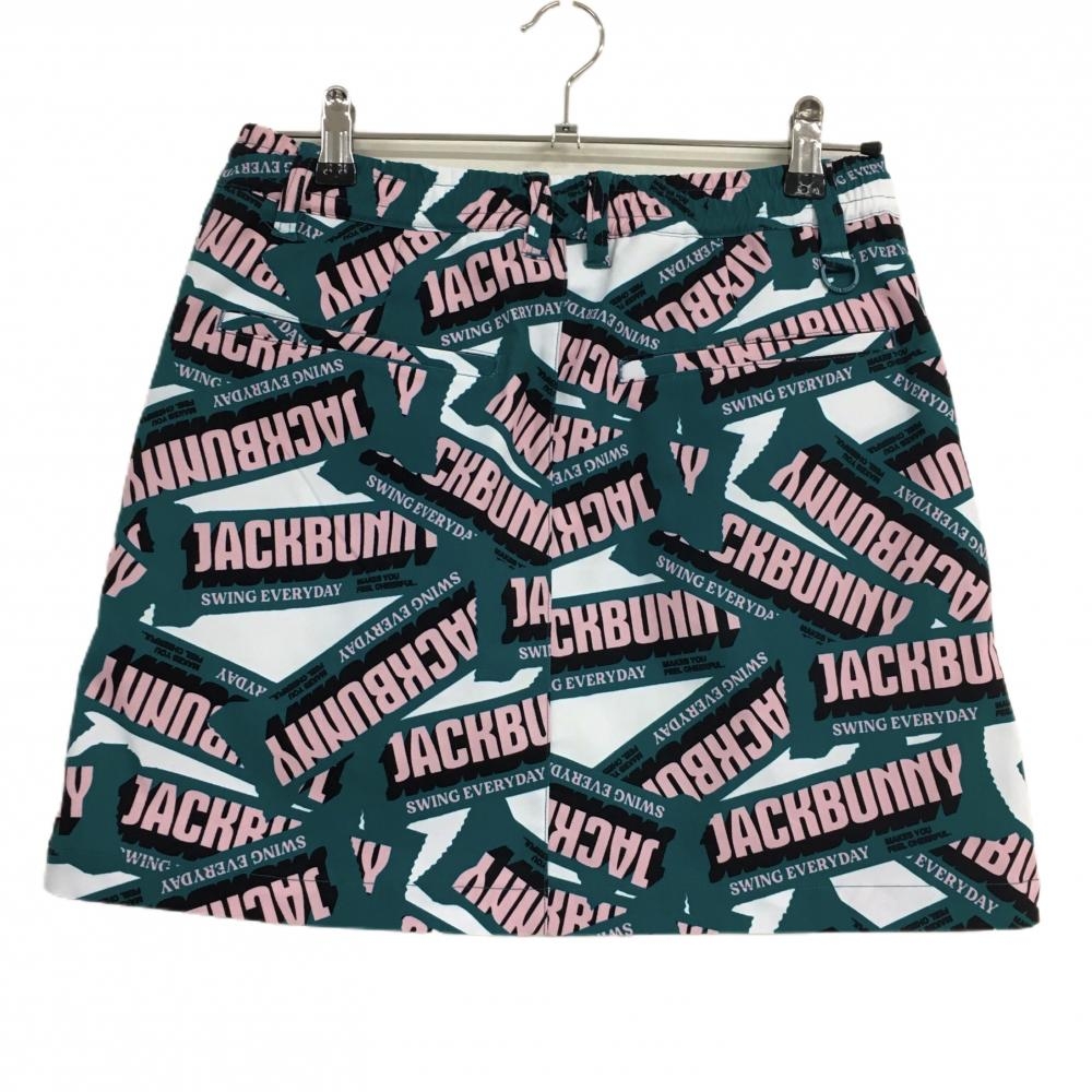 【超美品】ジャックバニー スカート ブルーグリーン×ピンク ロゴ総柄 レディース 2(L) ゴルフウェア 2025年モデル Jack Bunny