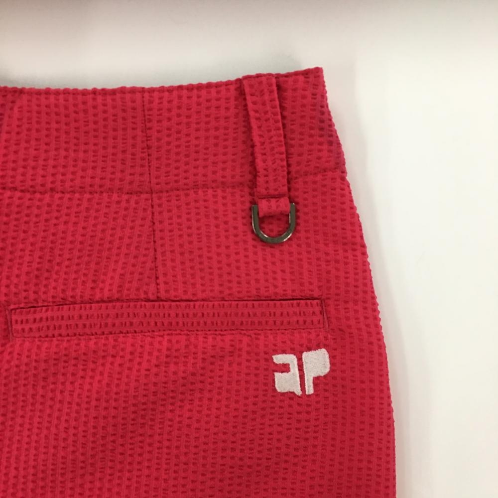 【美品】アンパスィ スカート レッドピンク サッカー生地 ロゴプリント レディース LL ゴルフウェア and per se