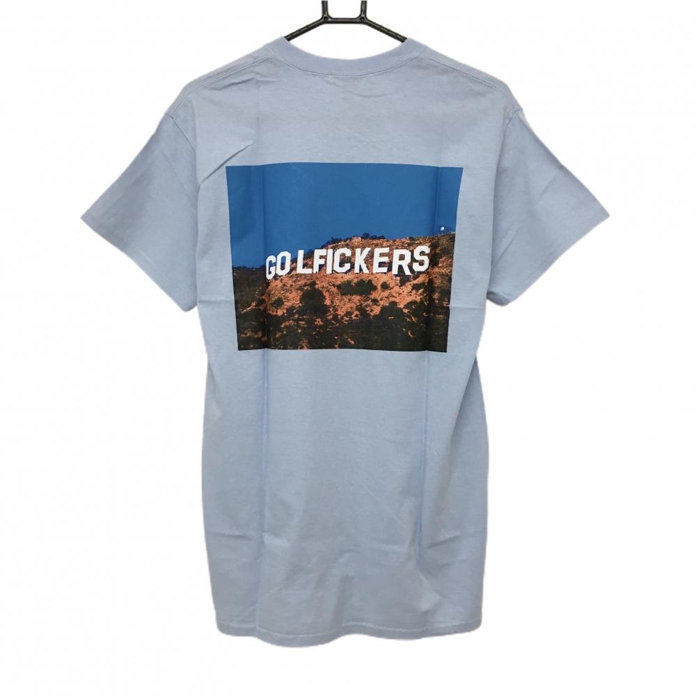 【新品】ゴルフィッカーズ Tシャツ ライトブルー 後ビッグプリント メンズ M ゴルフウェア Golfickers
