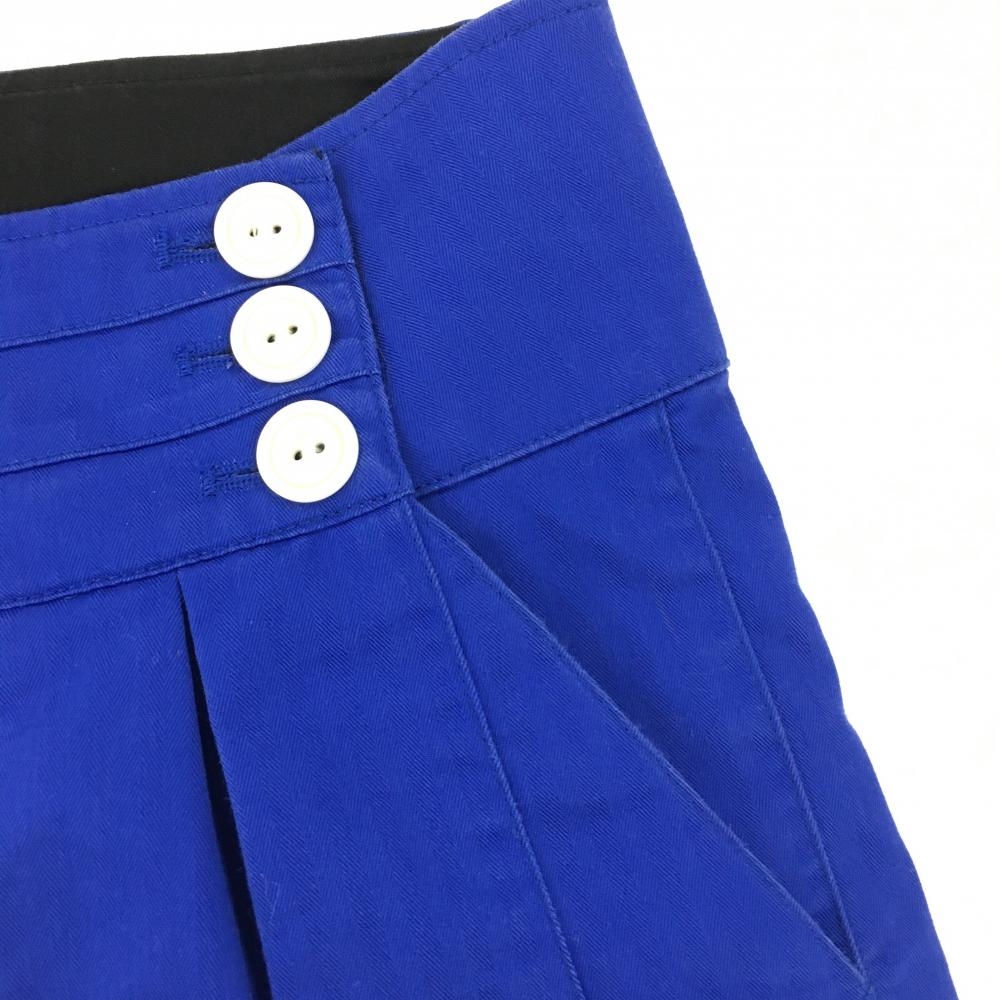 【美品】カッパ ショートパンツ ブルー ストライプ地模様 ストレッチ レディース 7 ゴルフウェア Kappa