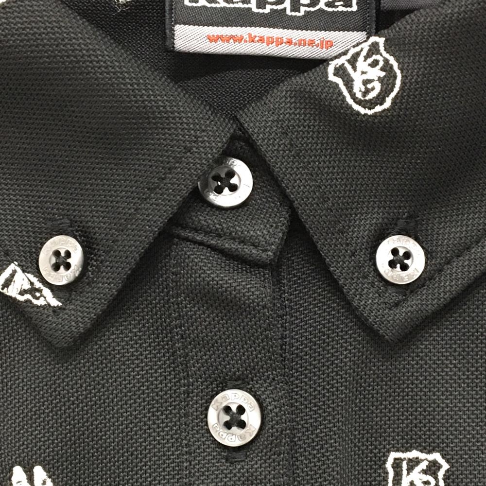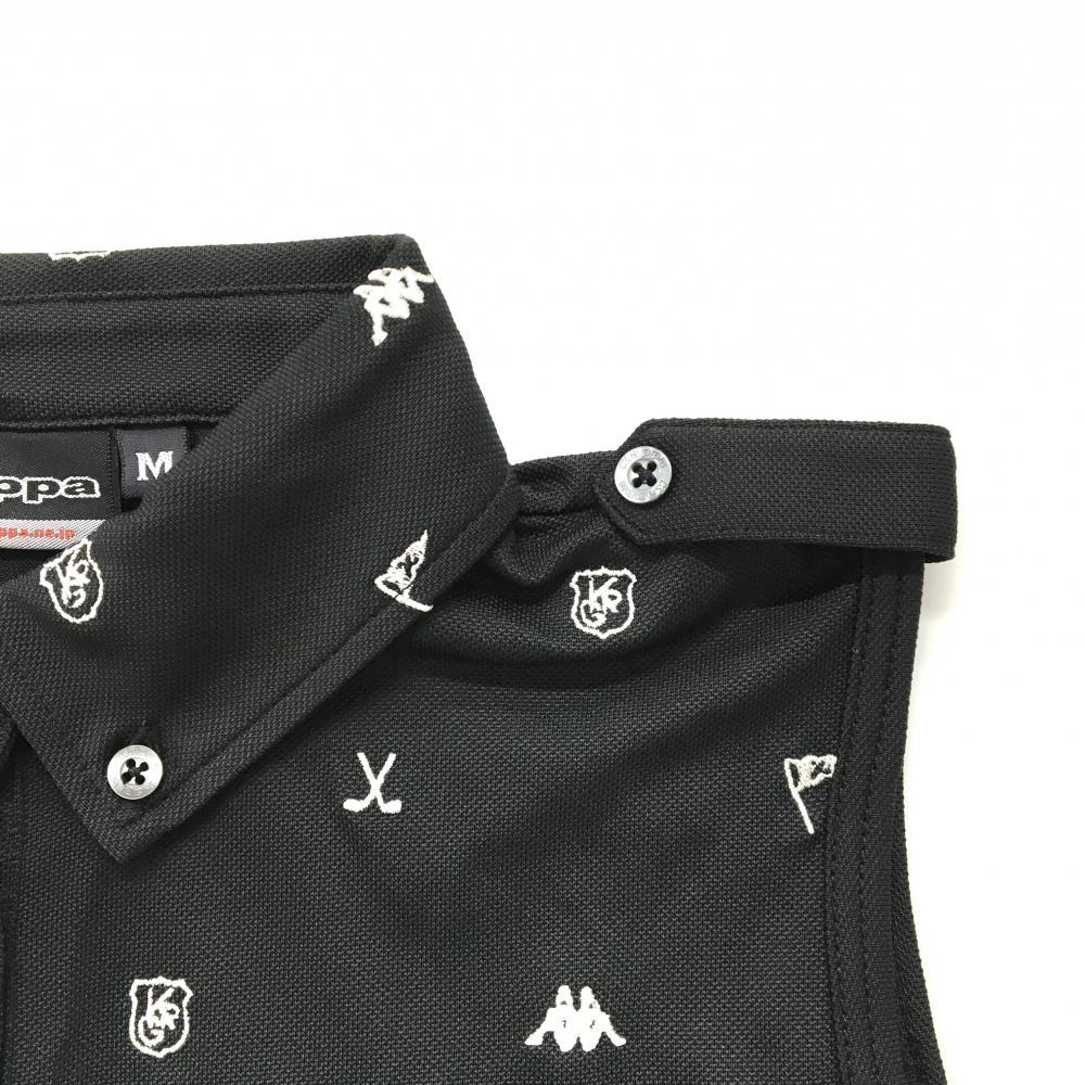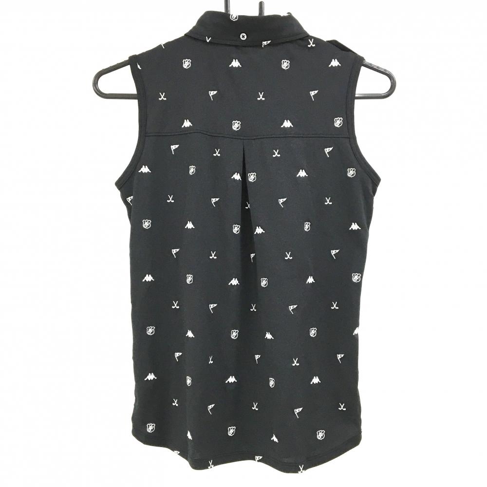 【超美品】カッパ ノースリーブポロシャツ 黒×白 ロゴ総柄 ボタンダウン レディース M ゴルフウェア Kappa