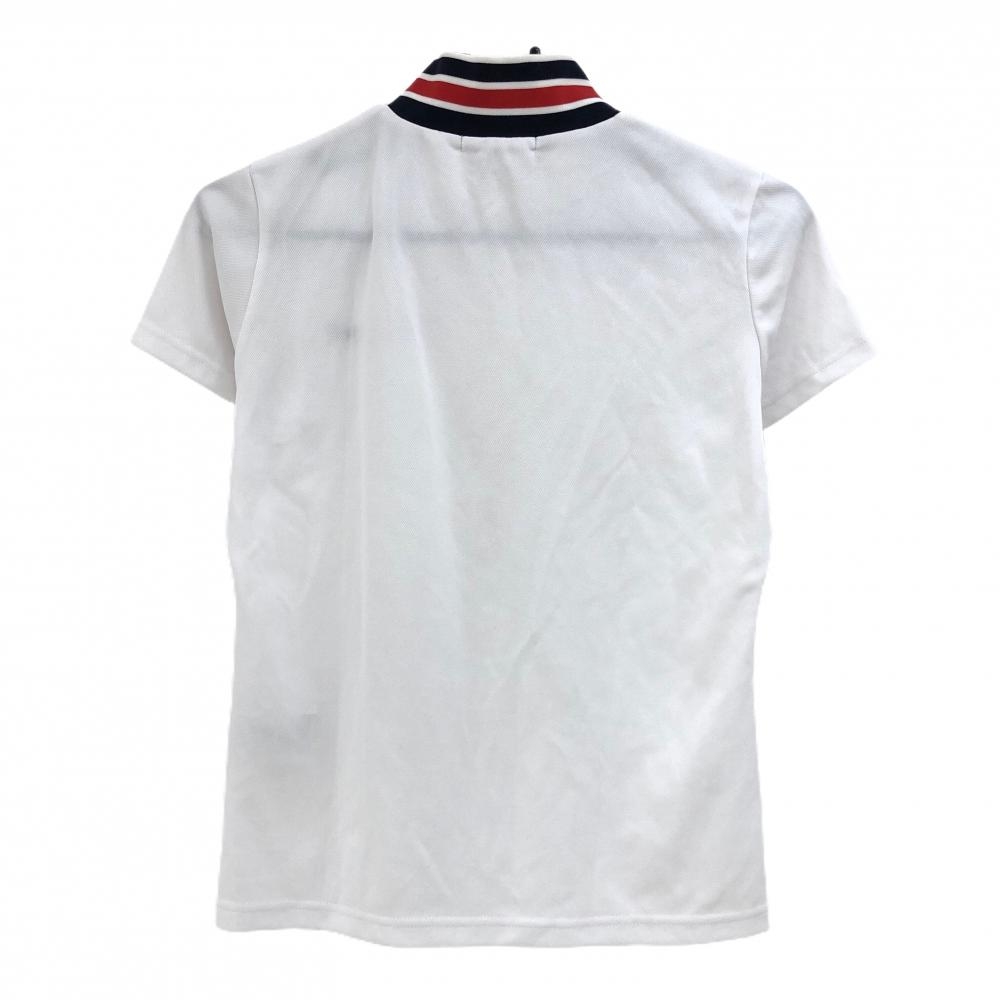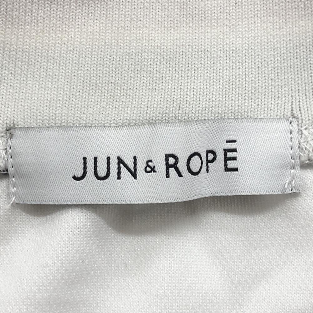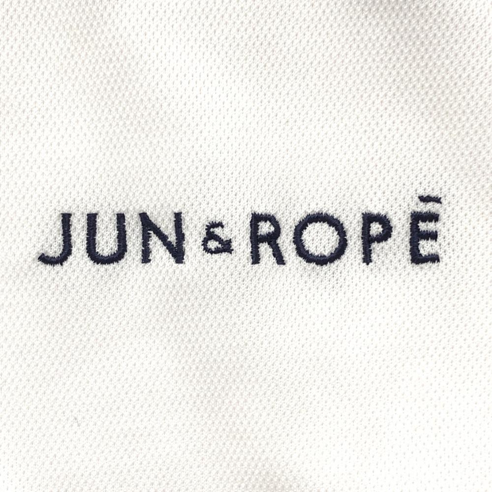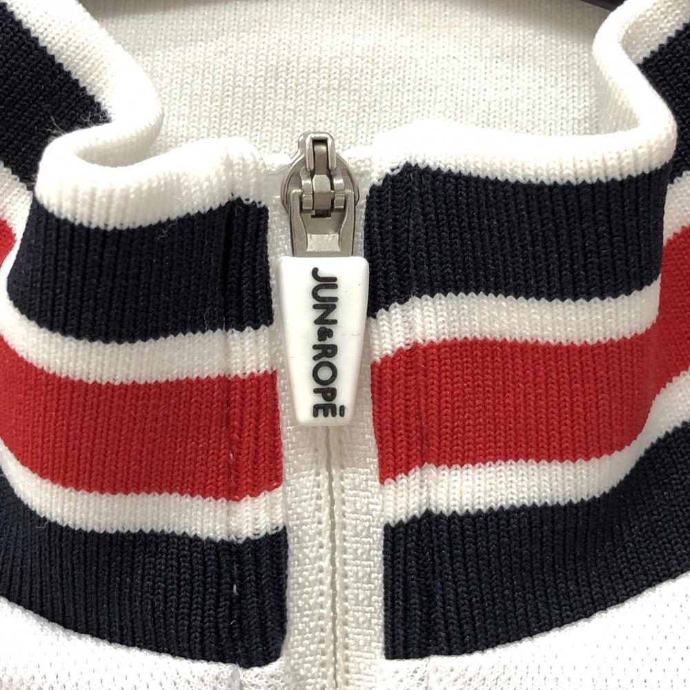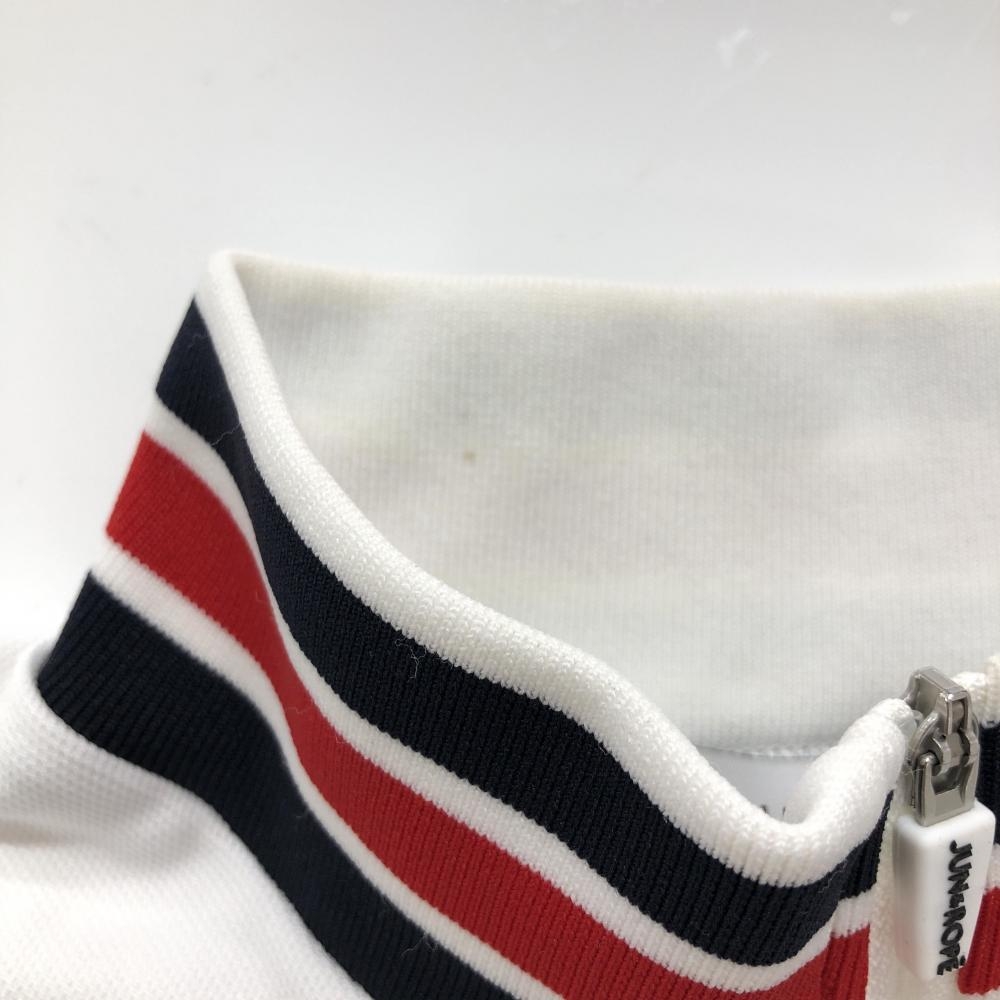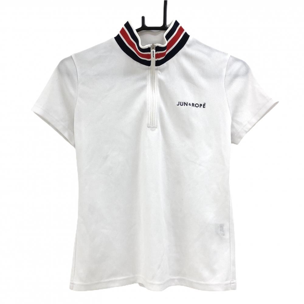 【美品】ジュンアンドロペ 半袖ハイネックシャツ 白×ネイビー ネックボーダー ハーフジップ レディース S ゴルフウェア JUN&ROPE