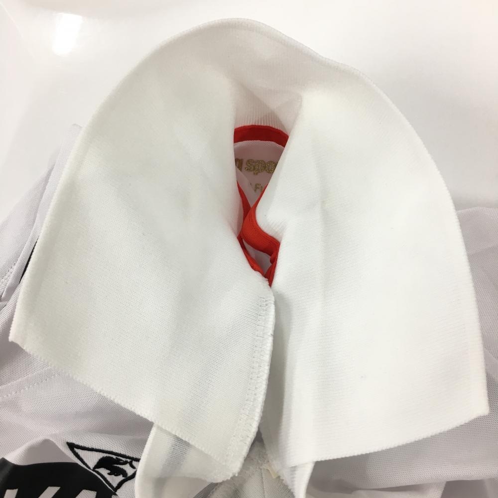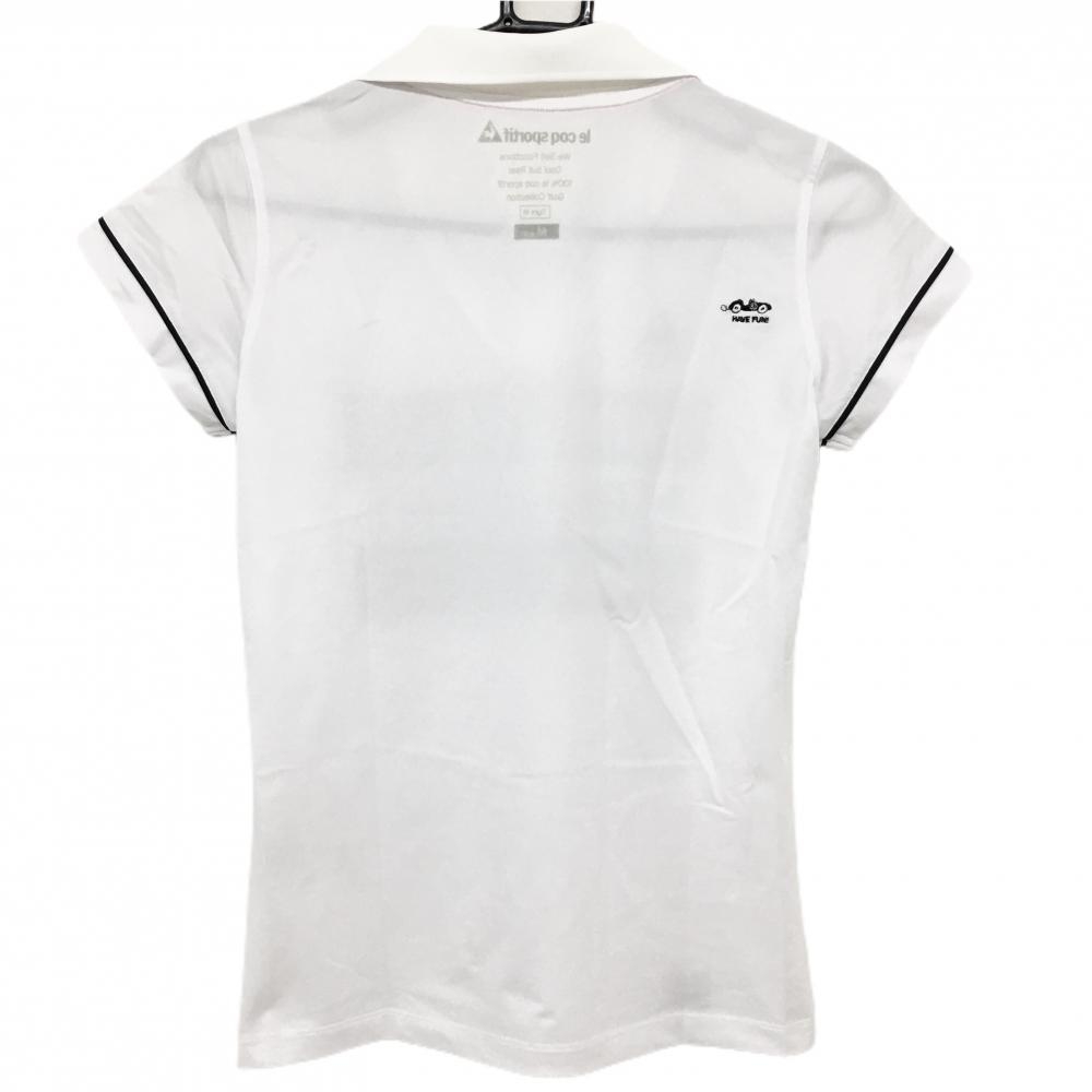【美品】ルコックゴルフ 襟付き半袖シャツ 白×黒 ロゴ刺しゅう レディース M ゴルフウェア le coq sportif