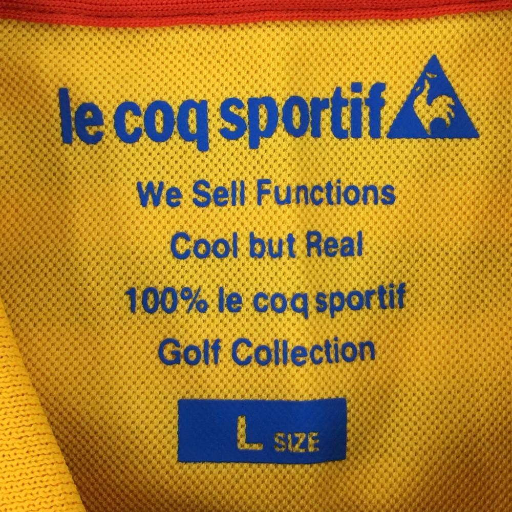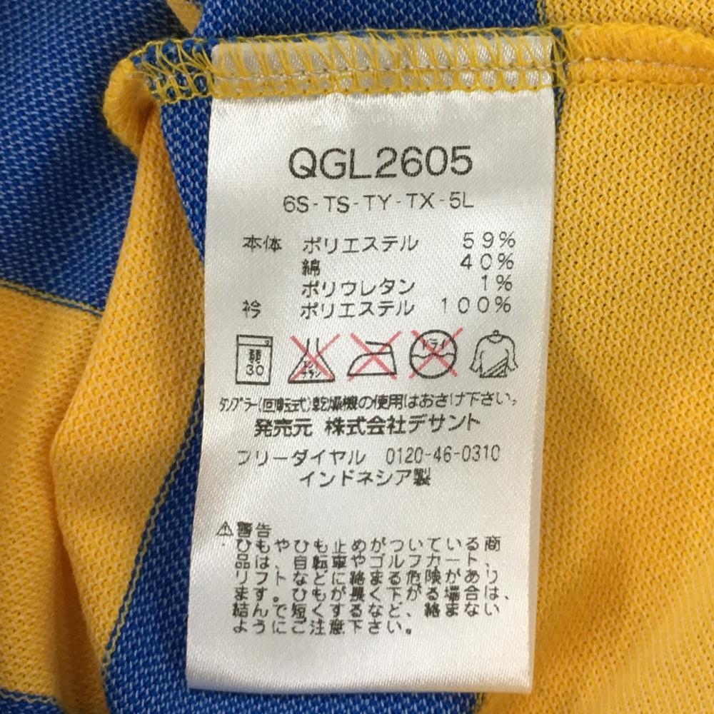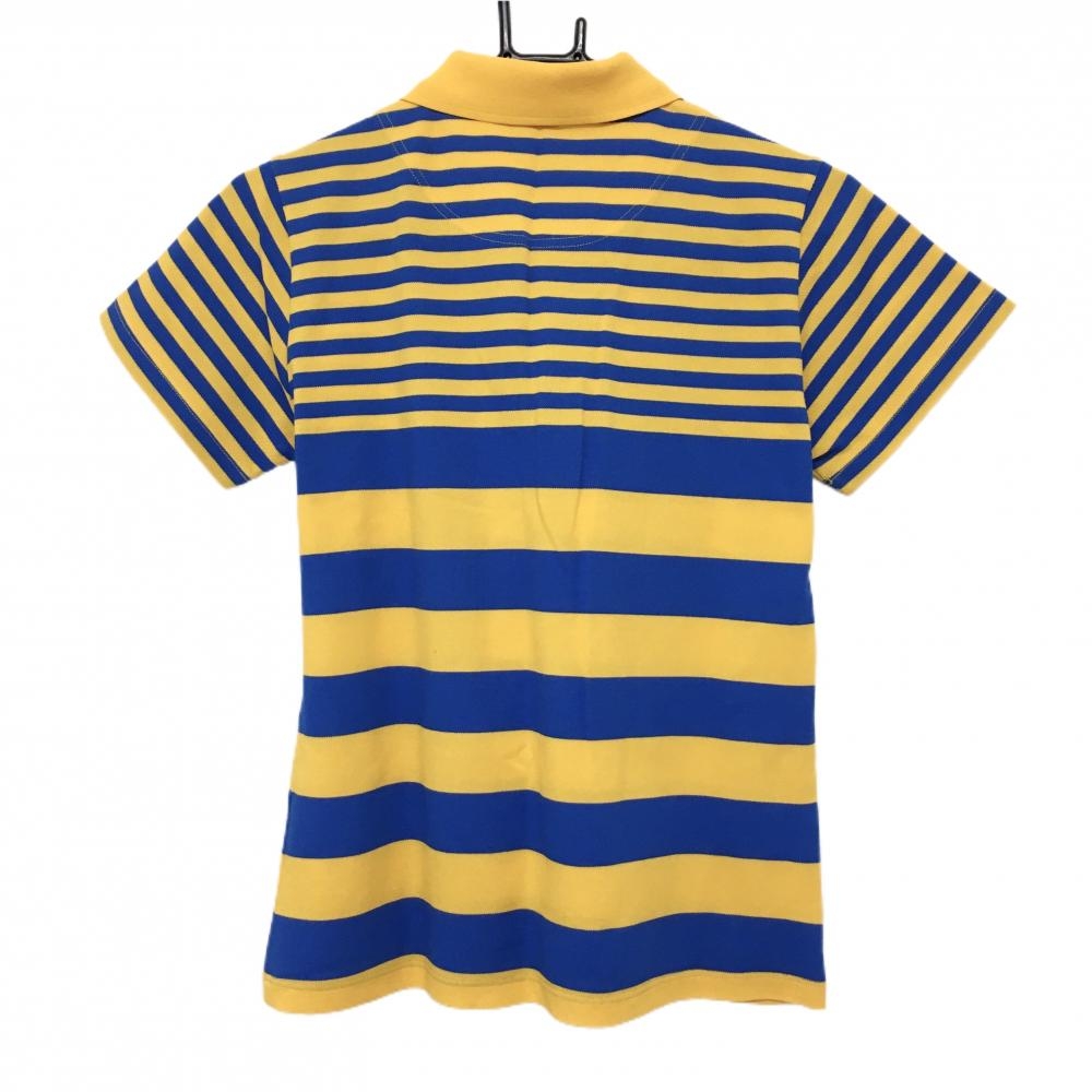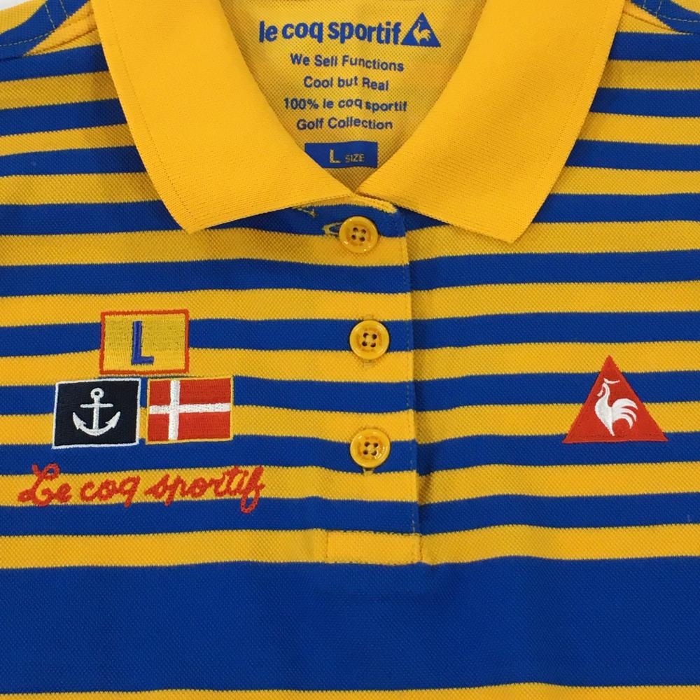 【超美品】ルコックゴルフ 半袖ポロシャツ オレンジイエロー×ブルー ボーダー ロゴ刺しゅう レディース L ゴルフウェア le coq sportif