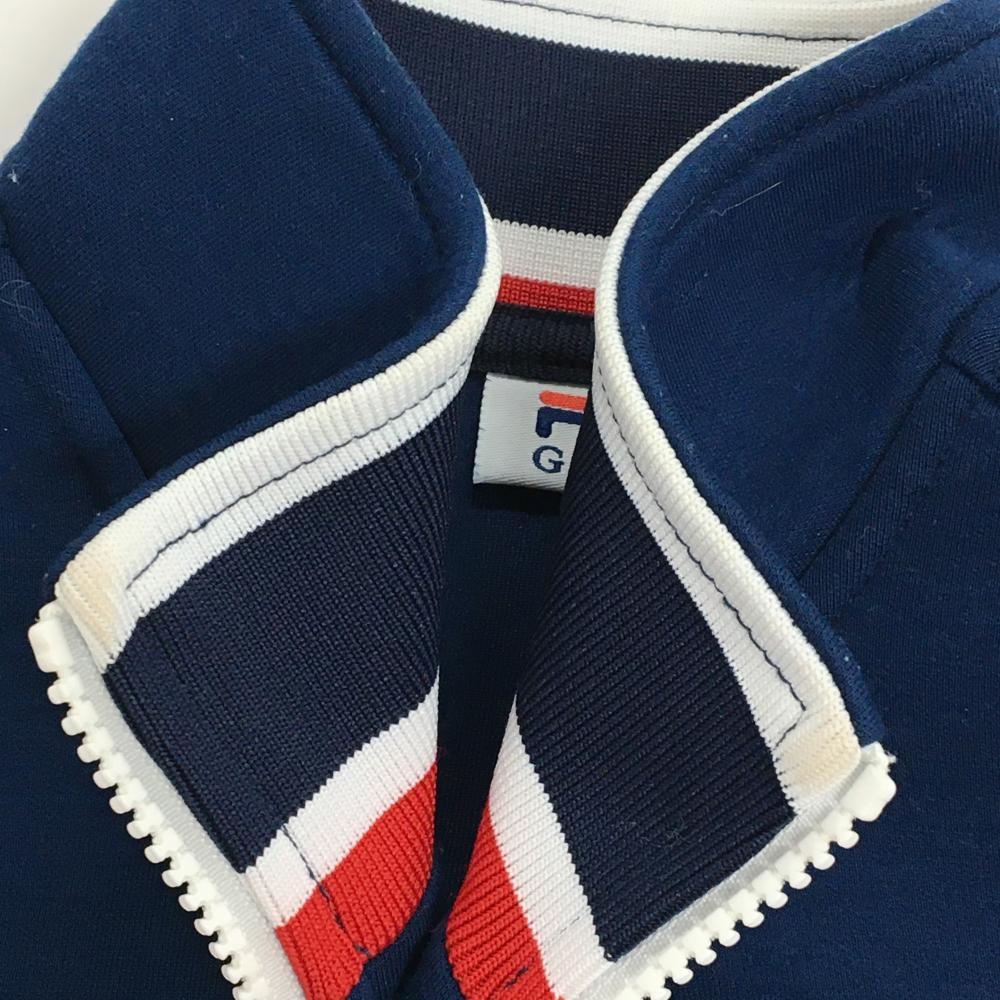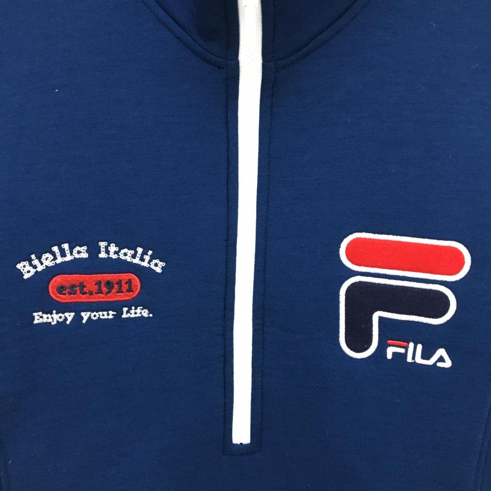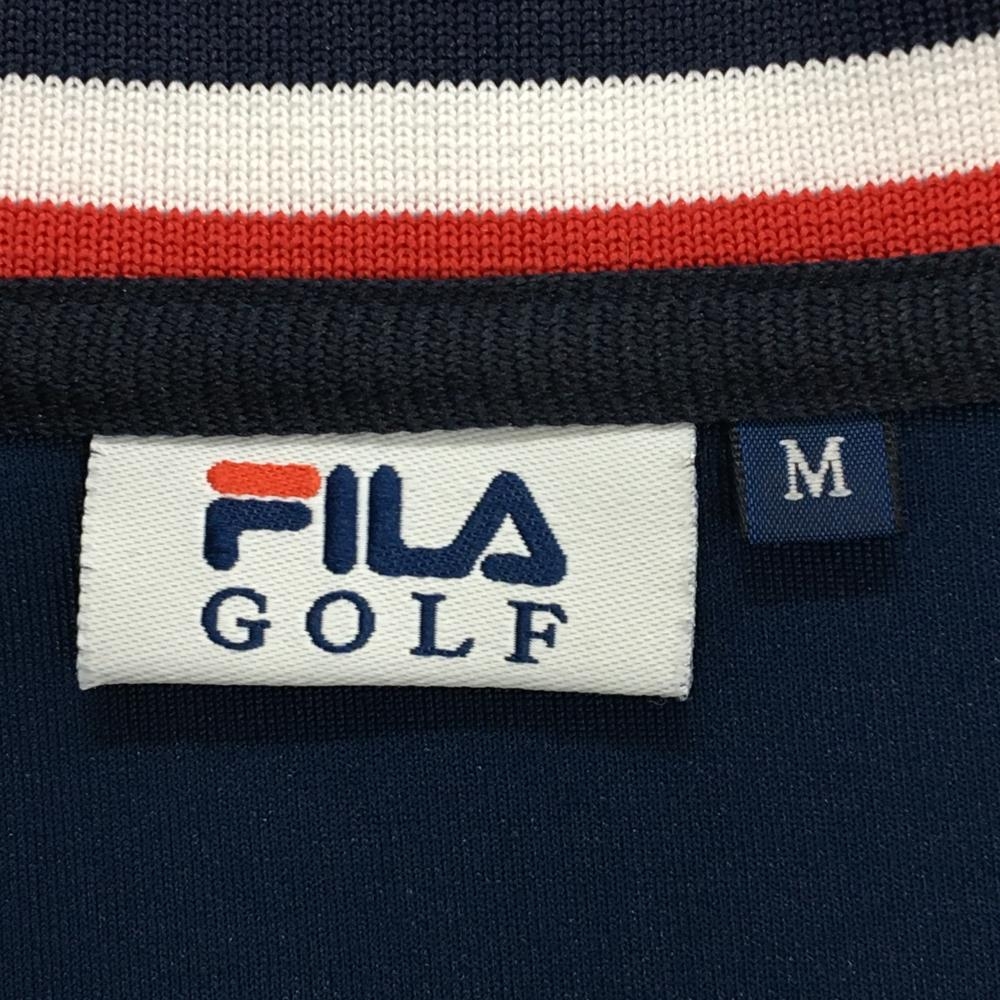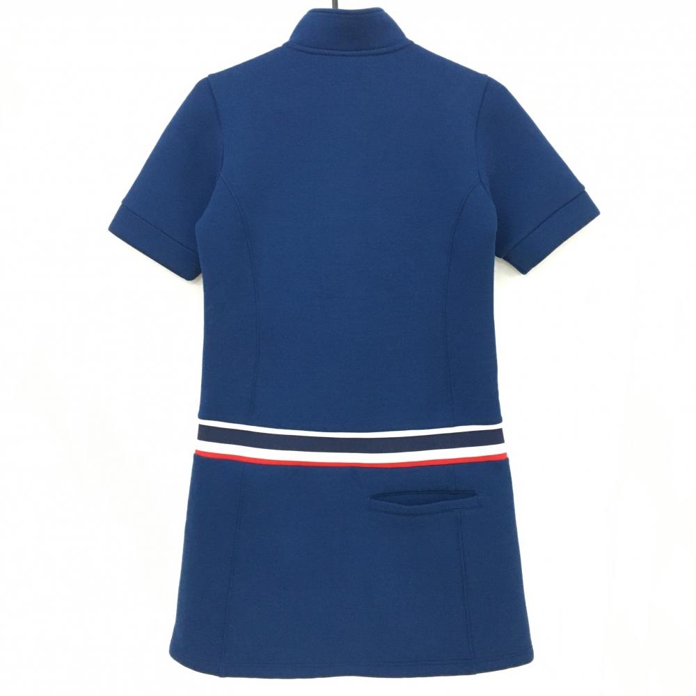 【美品】フィラゴルフ 半袖ハイネックワンピース ネイビー×白×レッド ハーフジップ レディース M ゴルフウェア FILA GOLF