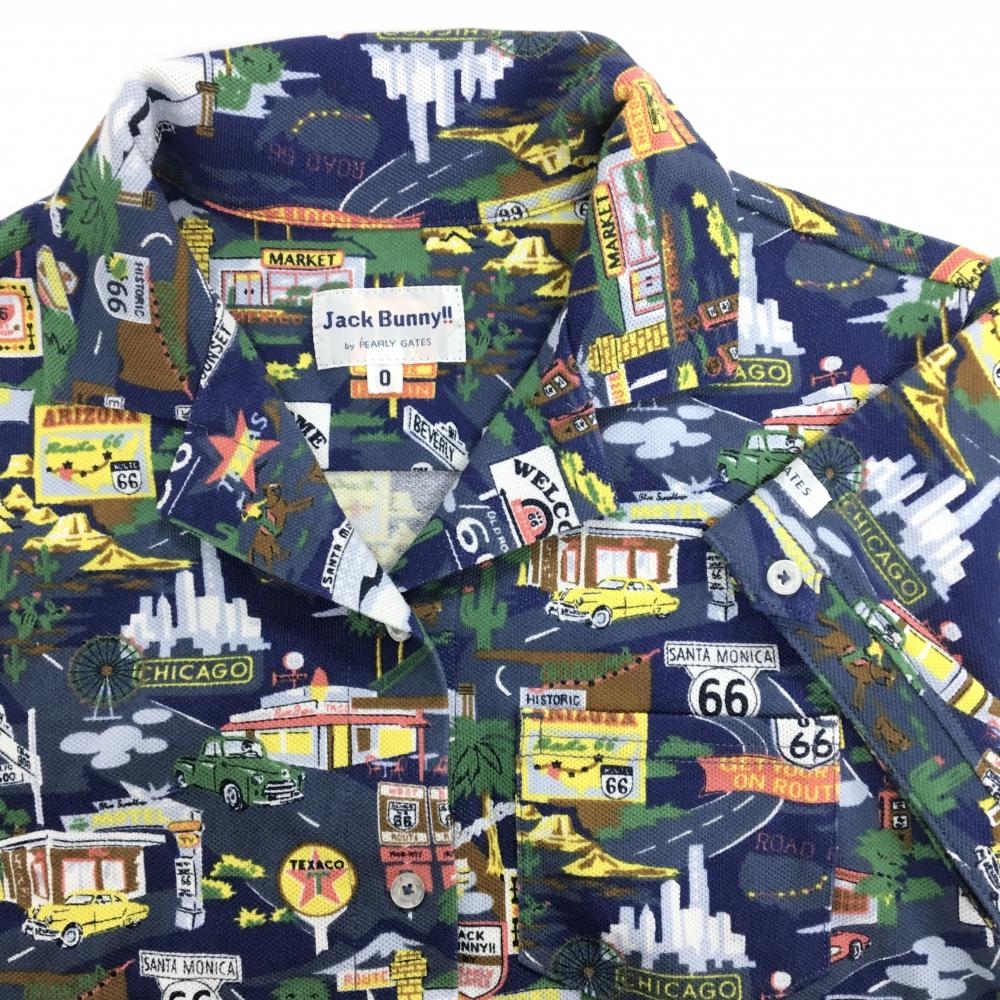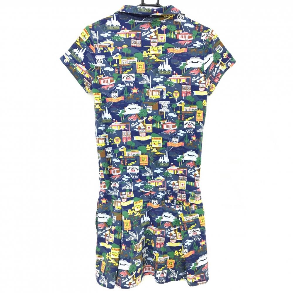 【美品】ジャックバニー 半袖ポロワンピース ネイビー×イエロー 総柄 レディース 0(S) ゴルフウェア Jack Bunny
