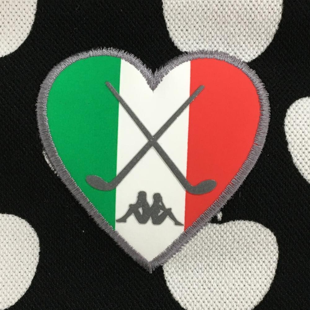 【超美品】カッパ 半袖ポロシャツ 黒×白 アップル柄 レディース S ゴルフウェア Kappa