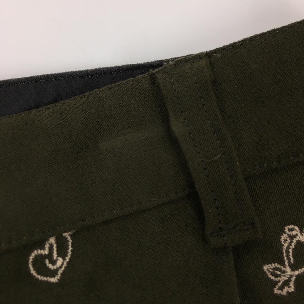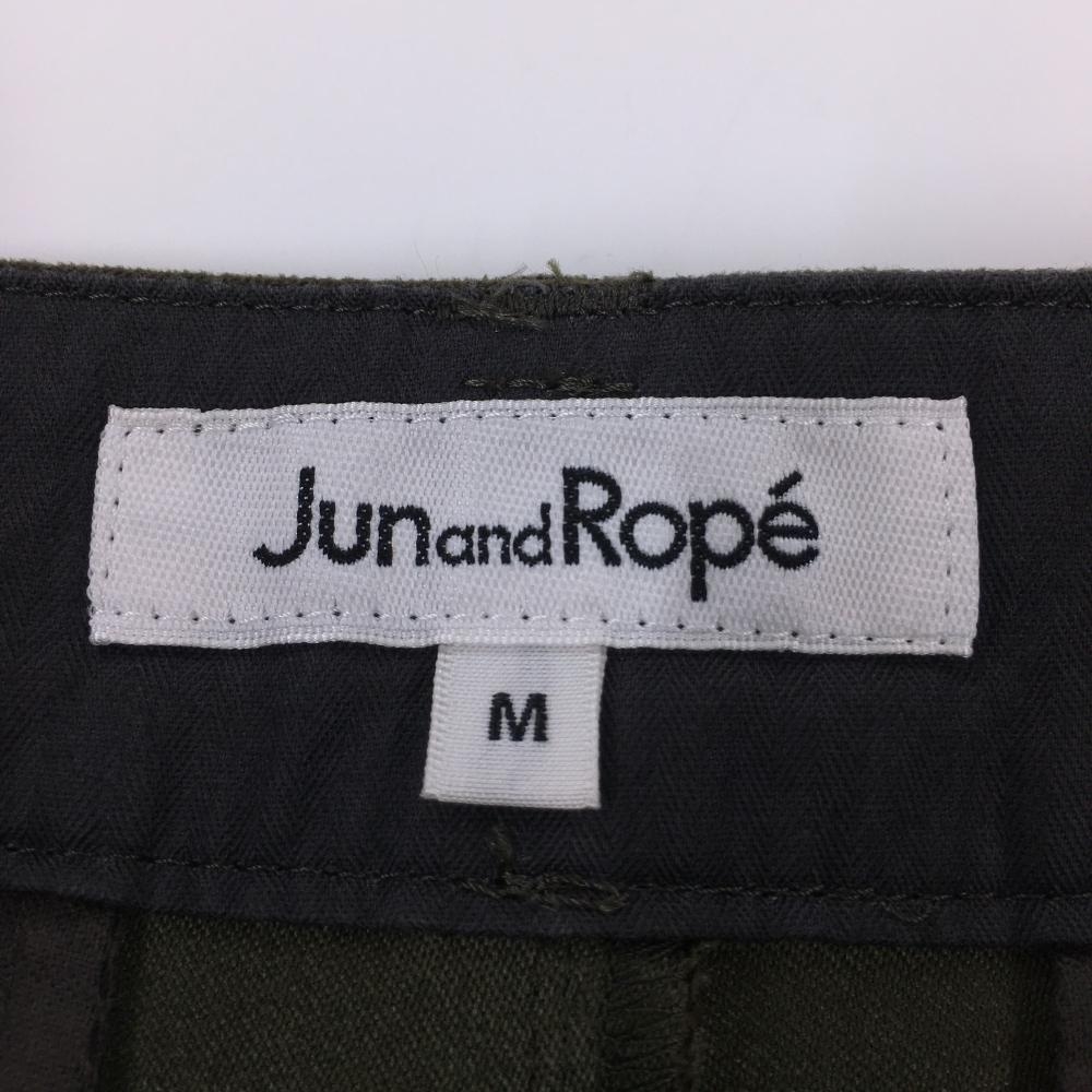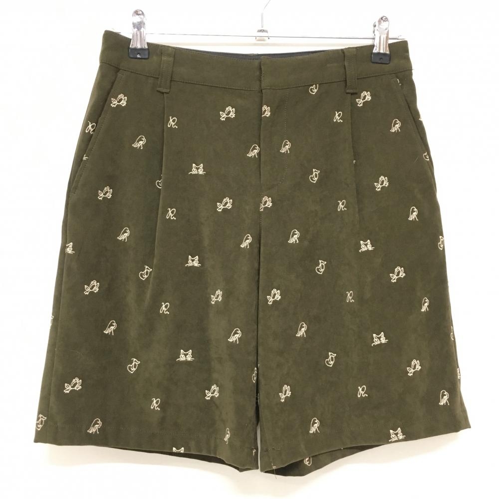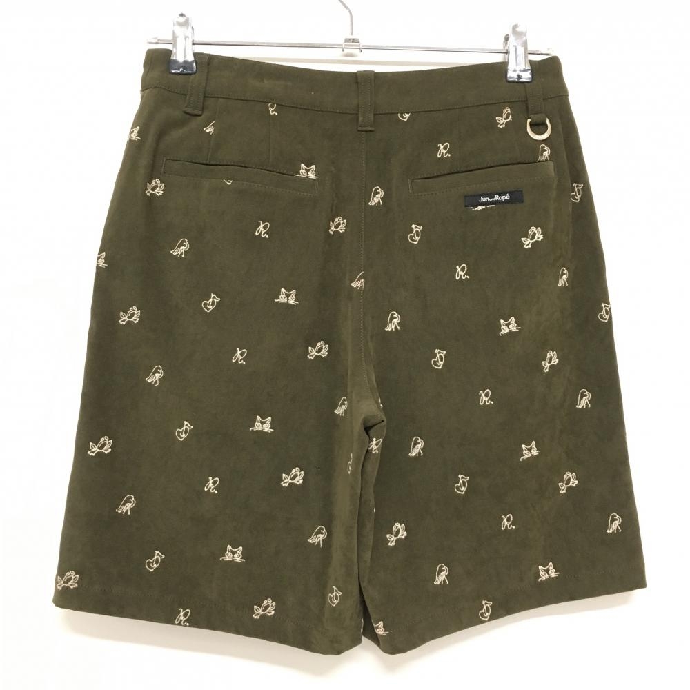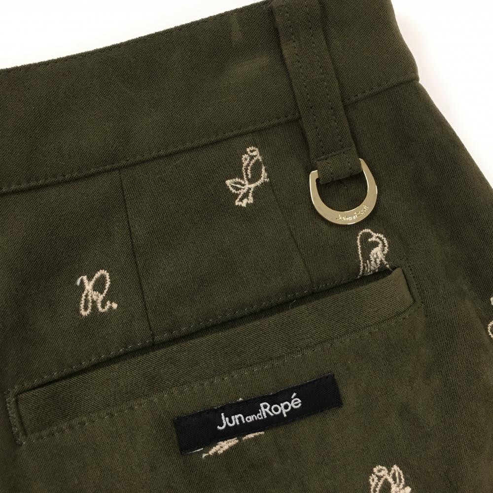 【美品】ジュンアンドロペ ハーフパンツ カーキ×ベージュ 刺しゅう総柄 ストレッチ レディース M ゴルフウェア JUN&ROPE