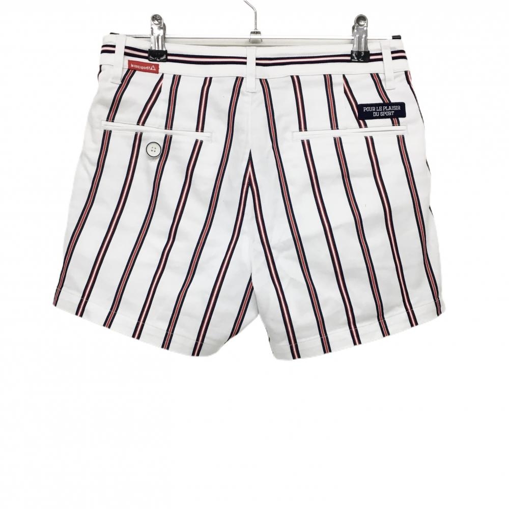 【美品】ルコック ハーフパンツ 白×ネイビー×レッド ストライプ調 レディース 9 ゴルフウェア le coq sportif
