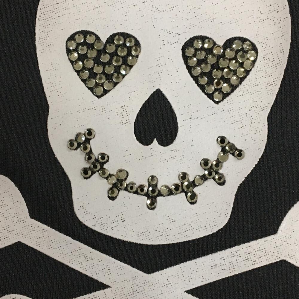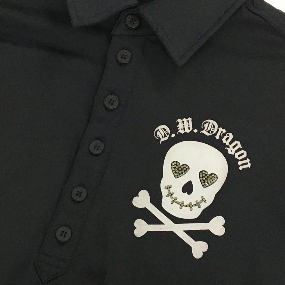 【未使用品】ダンスウィズドラゴン 長袖ポロシャツ 黒 スカル ラインストーン レディース 2(M) ゴルフウェア Dance With Dragon