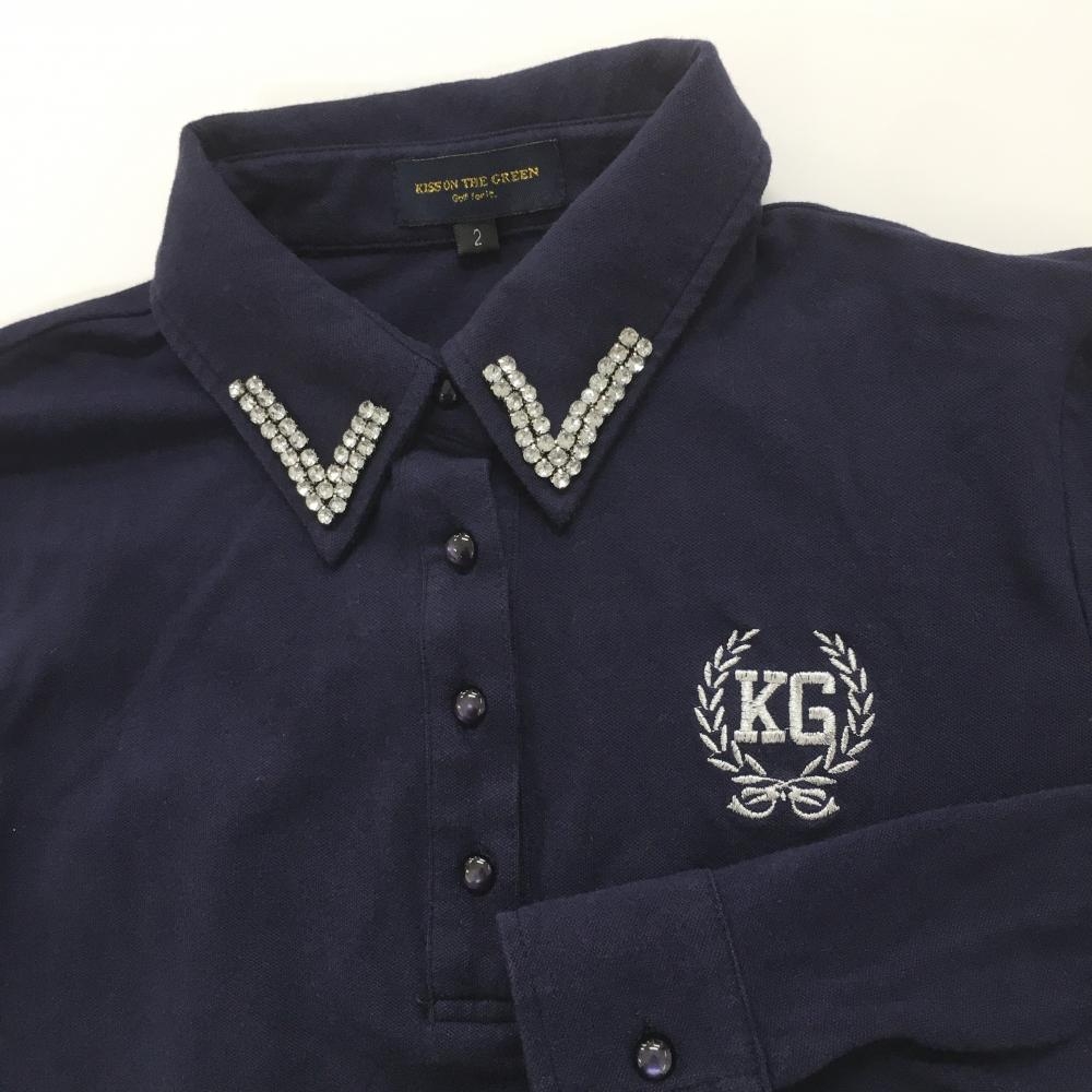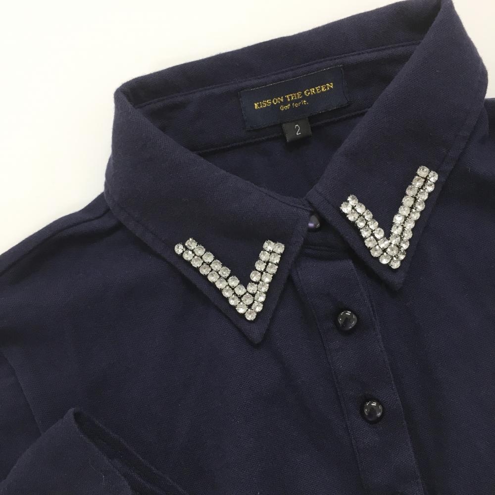 キスオンザグリーン 長袖ポロシャツ ネイビー 襟ラインストーン レディース 2(M) ゴルフウェア kiss on the green