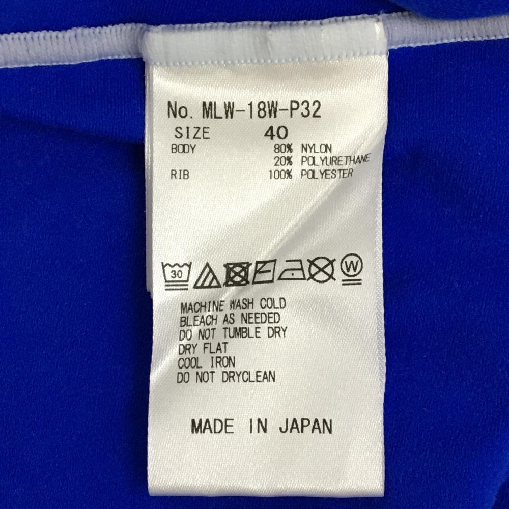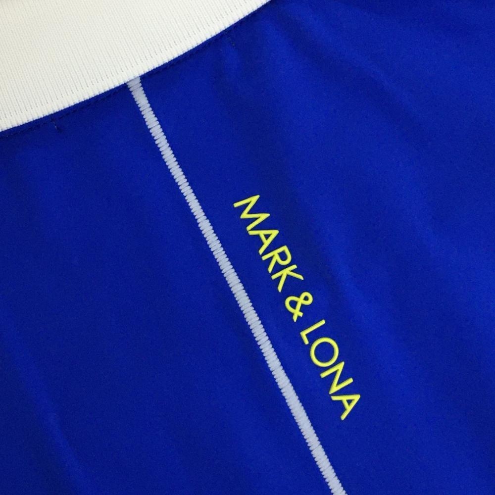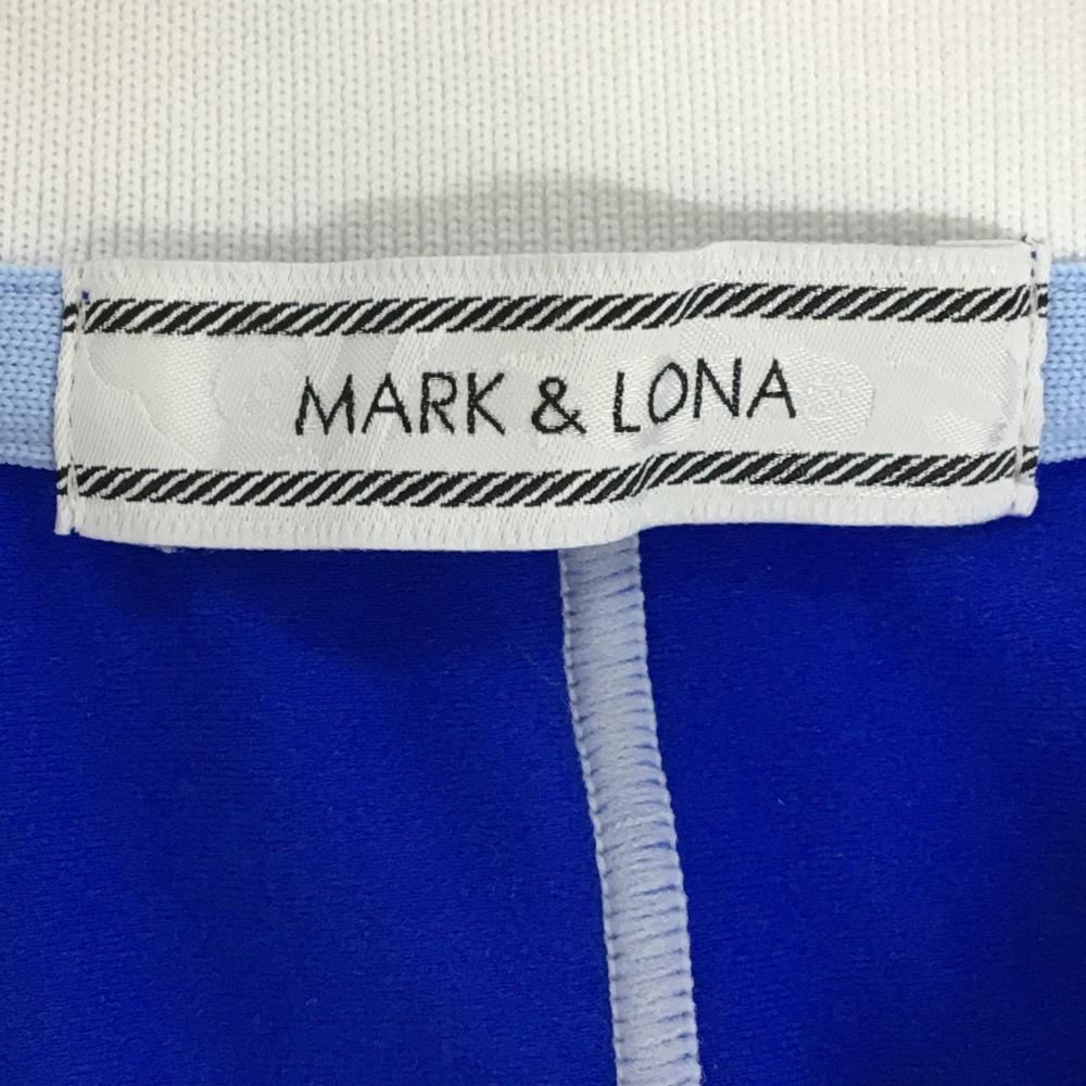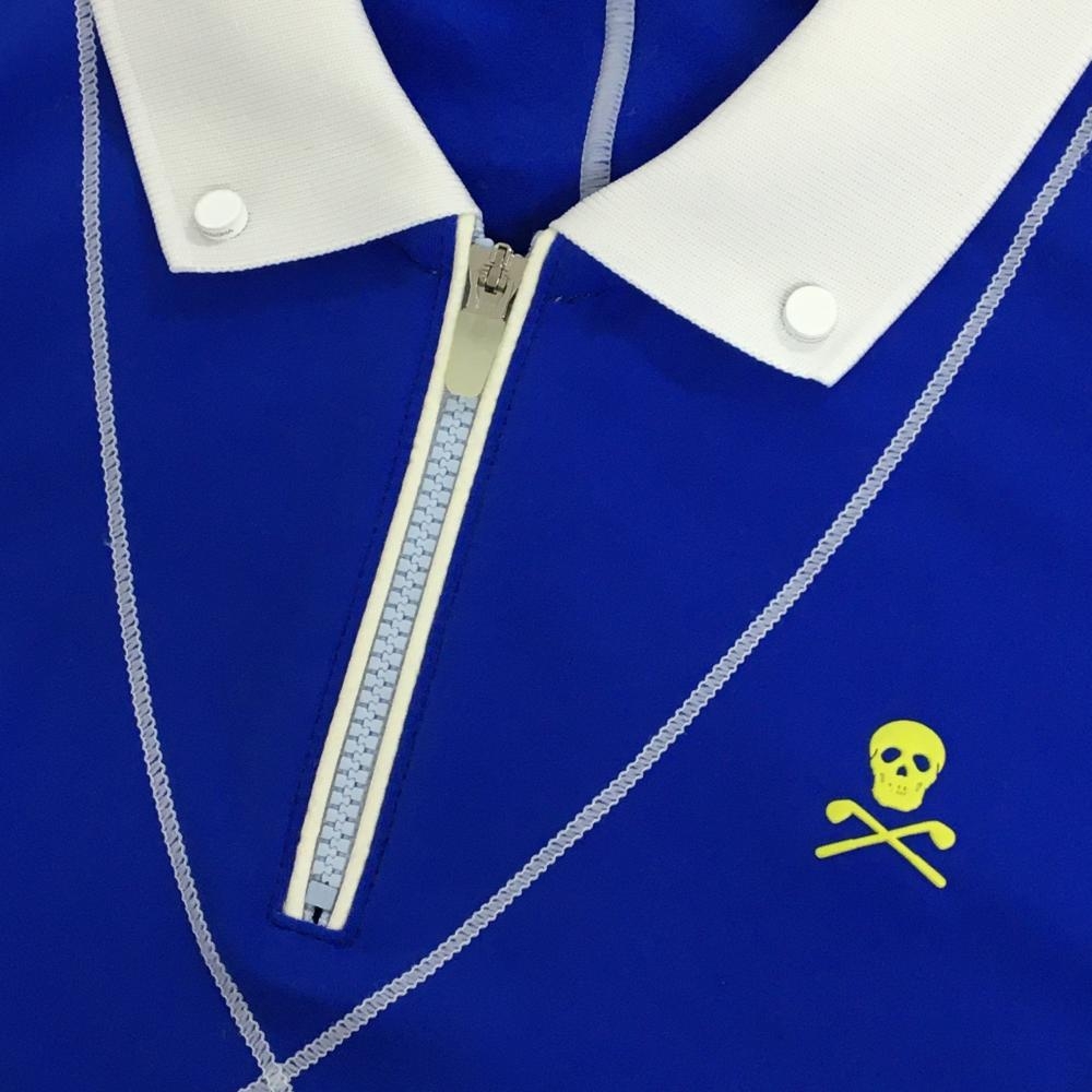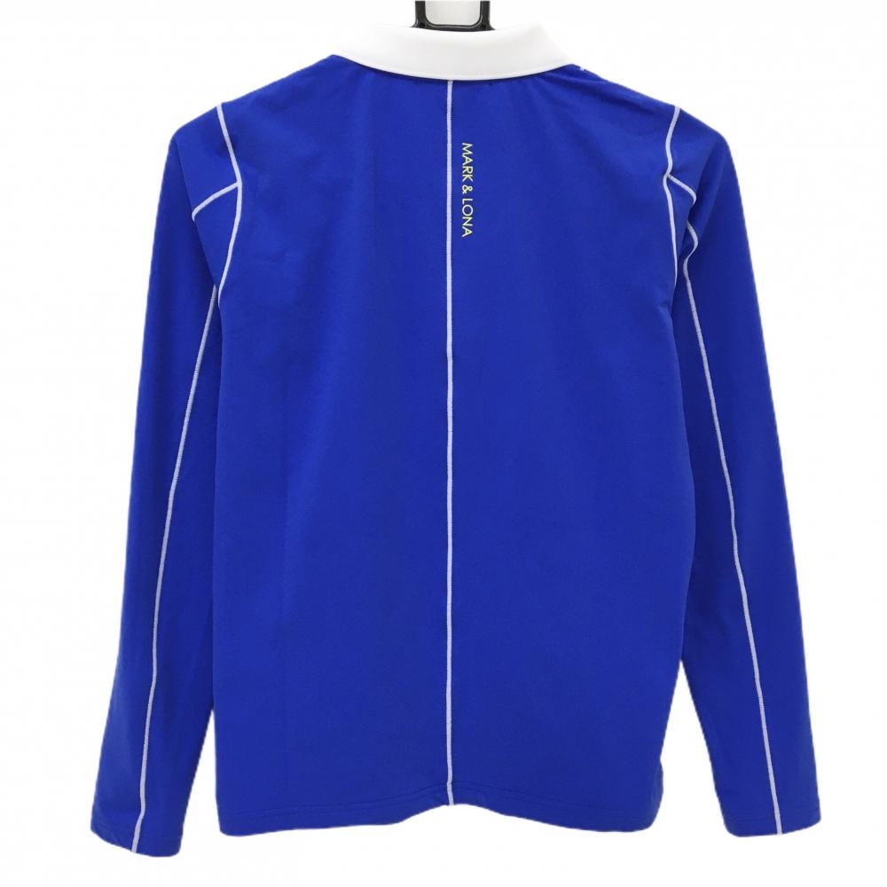 【超美品】マークアンドロナ 長袖ポロシャツ ブルー×白 裏微起毛 ハーフジップ スカル レディース 40(L) ゴルフウェア MARK&LONA