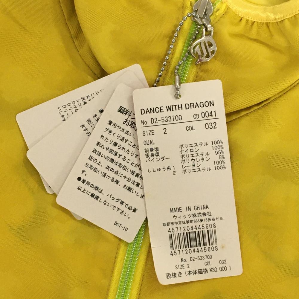 【新品】ダンスウィズドラゴン アウターベスト イエロー 前面カモフラ 迷彩 ハーフジップ レディース 2(M) ゴルフウェア Dance With Dragon