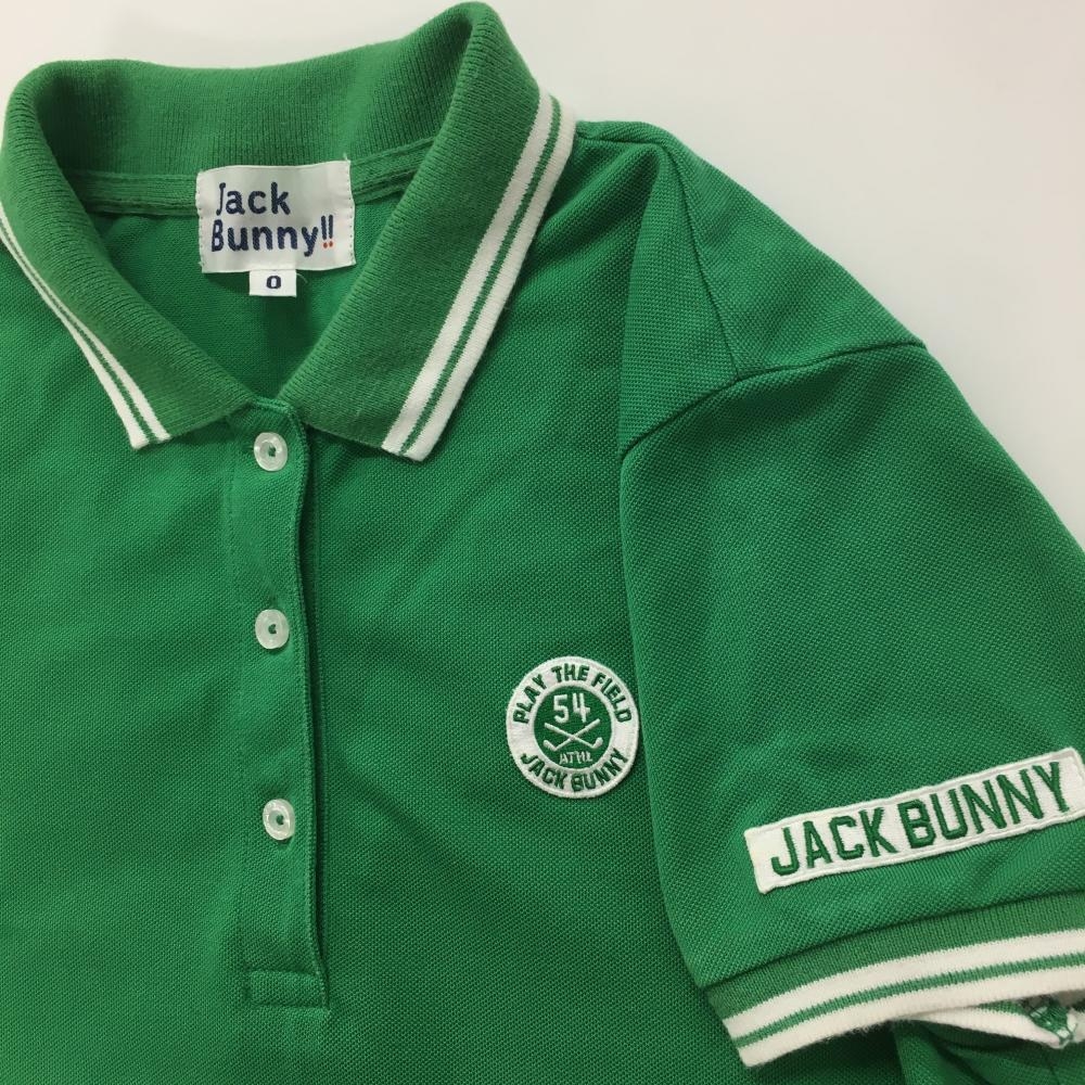 ジャックバニー 半袖ポロシャツ グリーン×白 バックプリント レディース 0(S) ゴルフウェア Jack Bunny