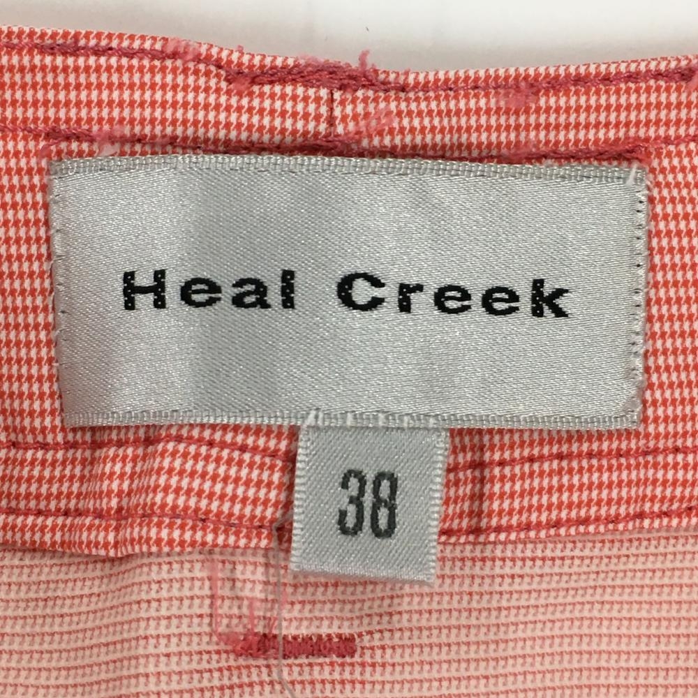 【超美品】ヒールクリーク スカート ピンク×白 千鳥格子 サイド切替 レディース 38 ゴルフウェア Heal Creek