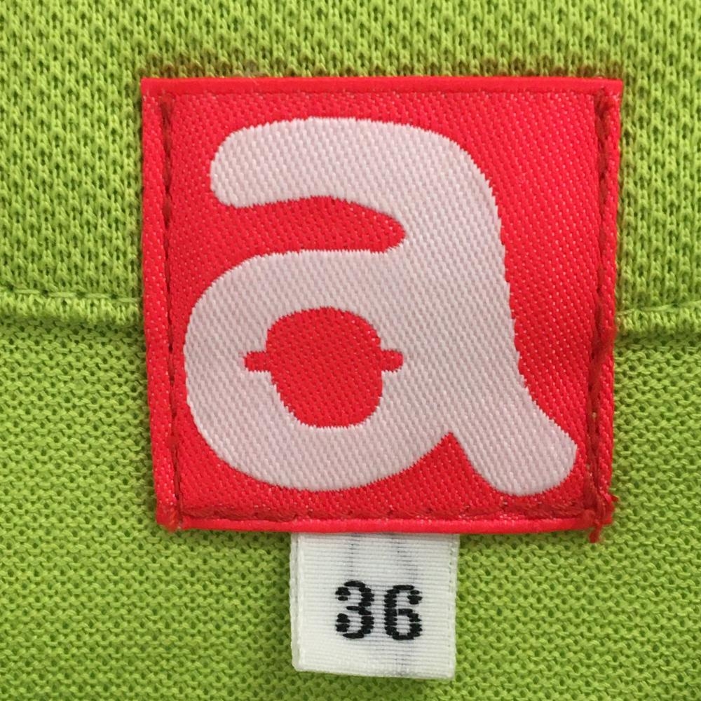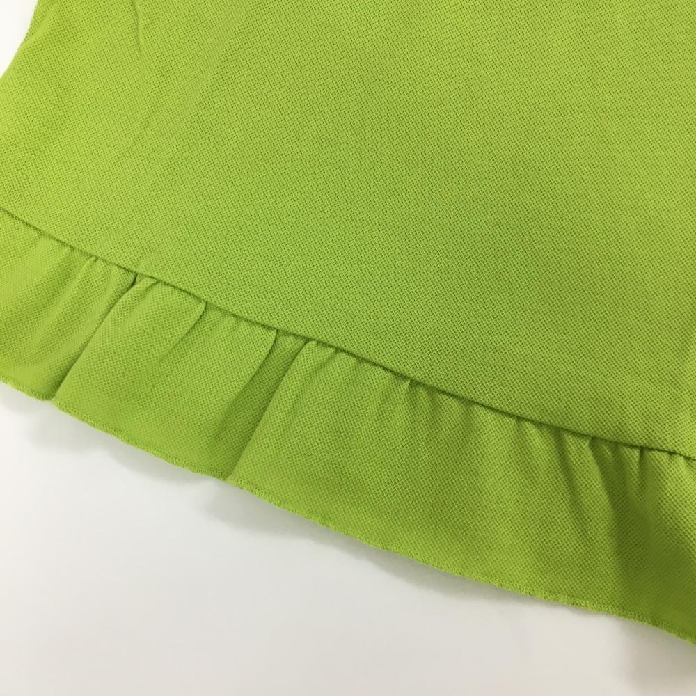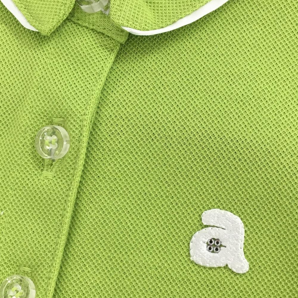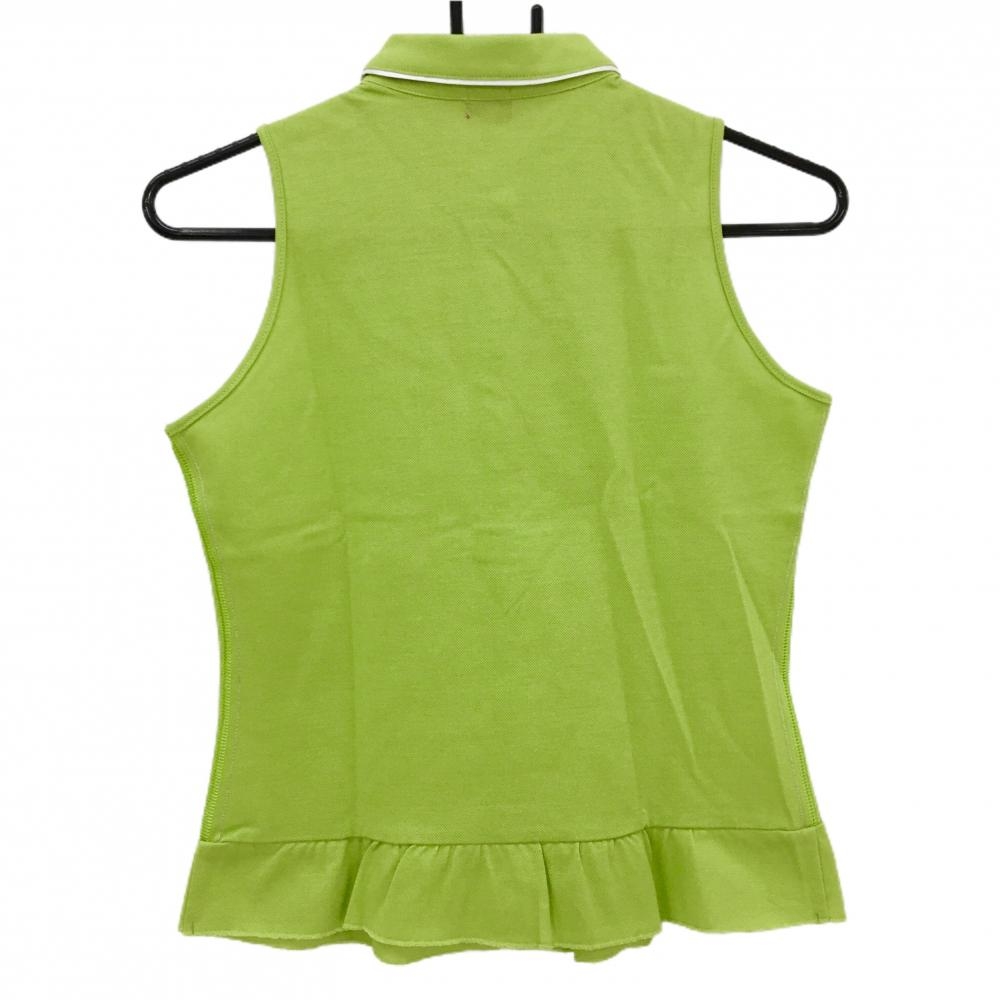 【超美品】アルチビオ ノースリーブポロシャツ グリーン ロゴ刺しゅう ラインストーン 裾フリル レディース 36(S) ゴルフウェア archivio