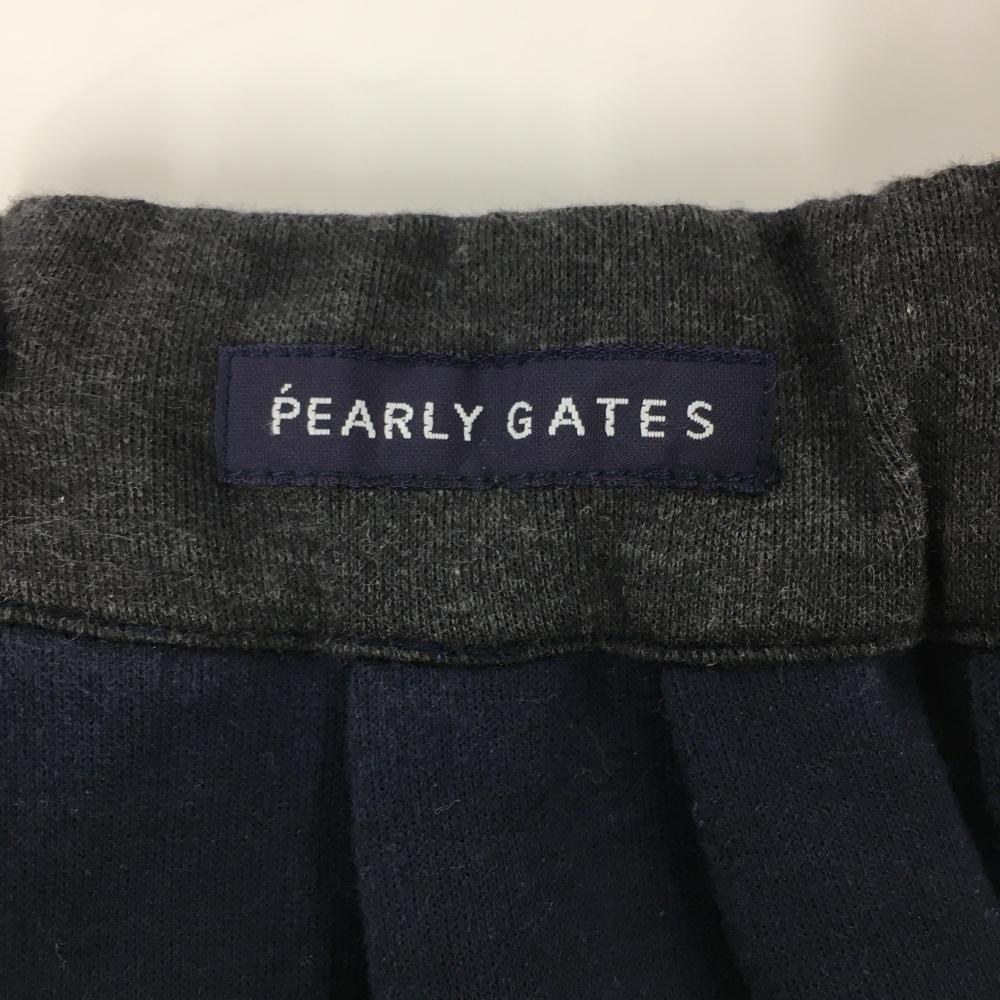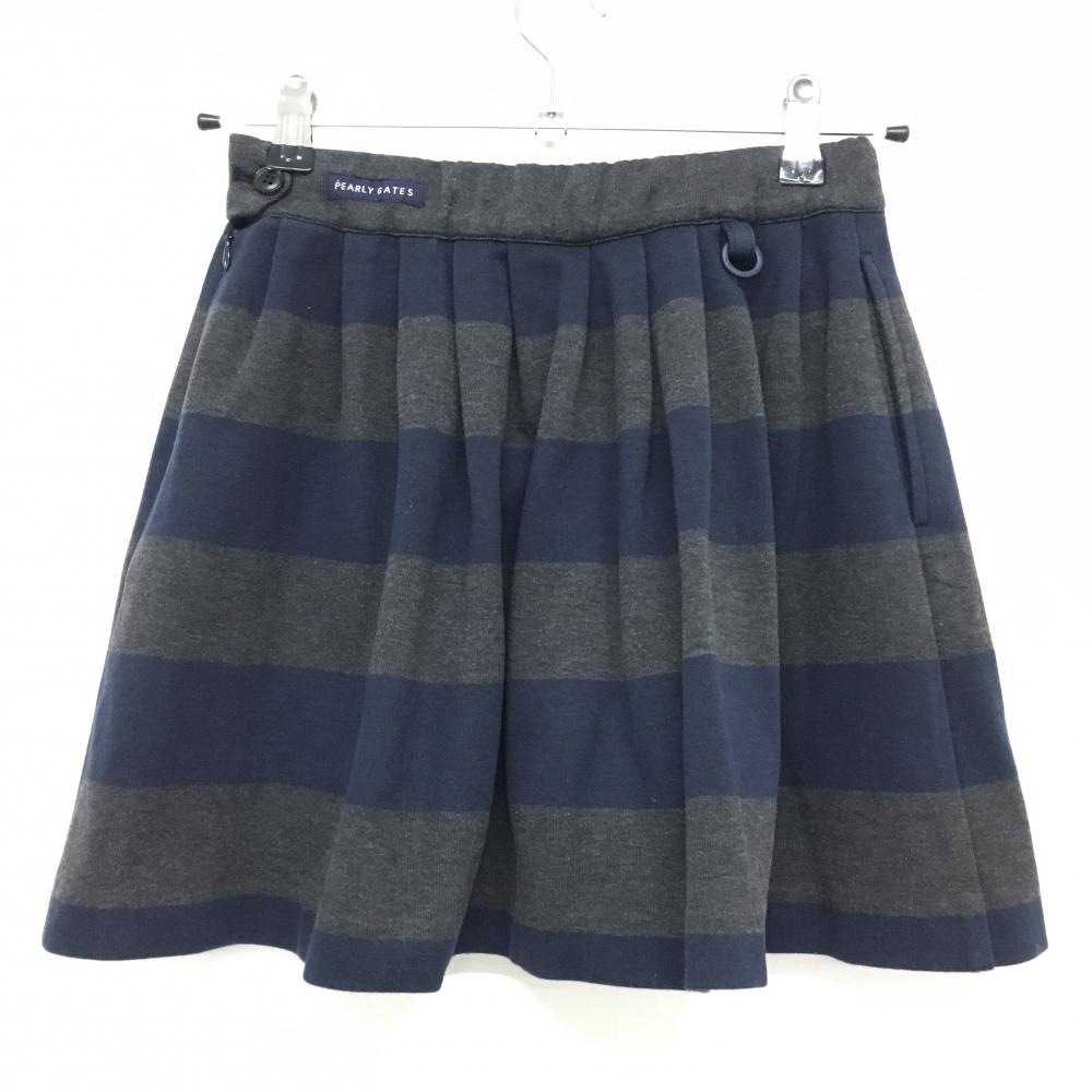 【美品】パーリーゲイツ スカート 杢ダークグレー×ネイビー ボーダー ウエストゴム 調整紐 レディース 0(S) ゴルフウェア PEARLY GATES