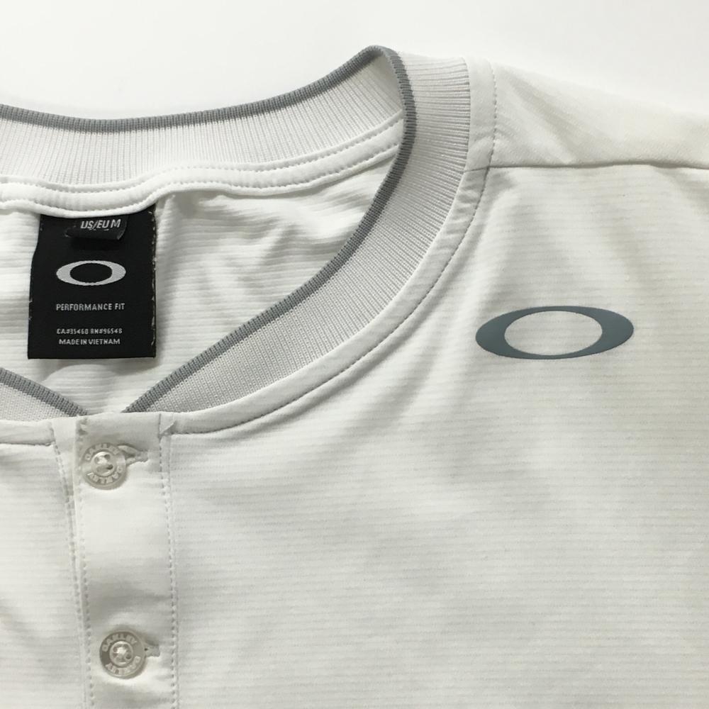 オークリー 半袖ポロシャツ 白×ライトグレー バイカラー メンズ L ゴルフウェア Oakley
