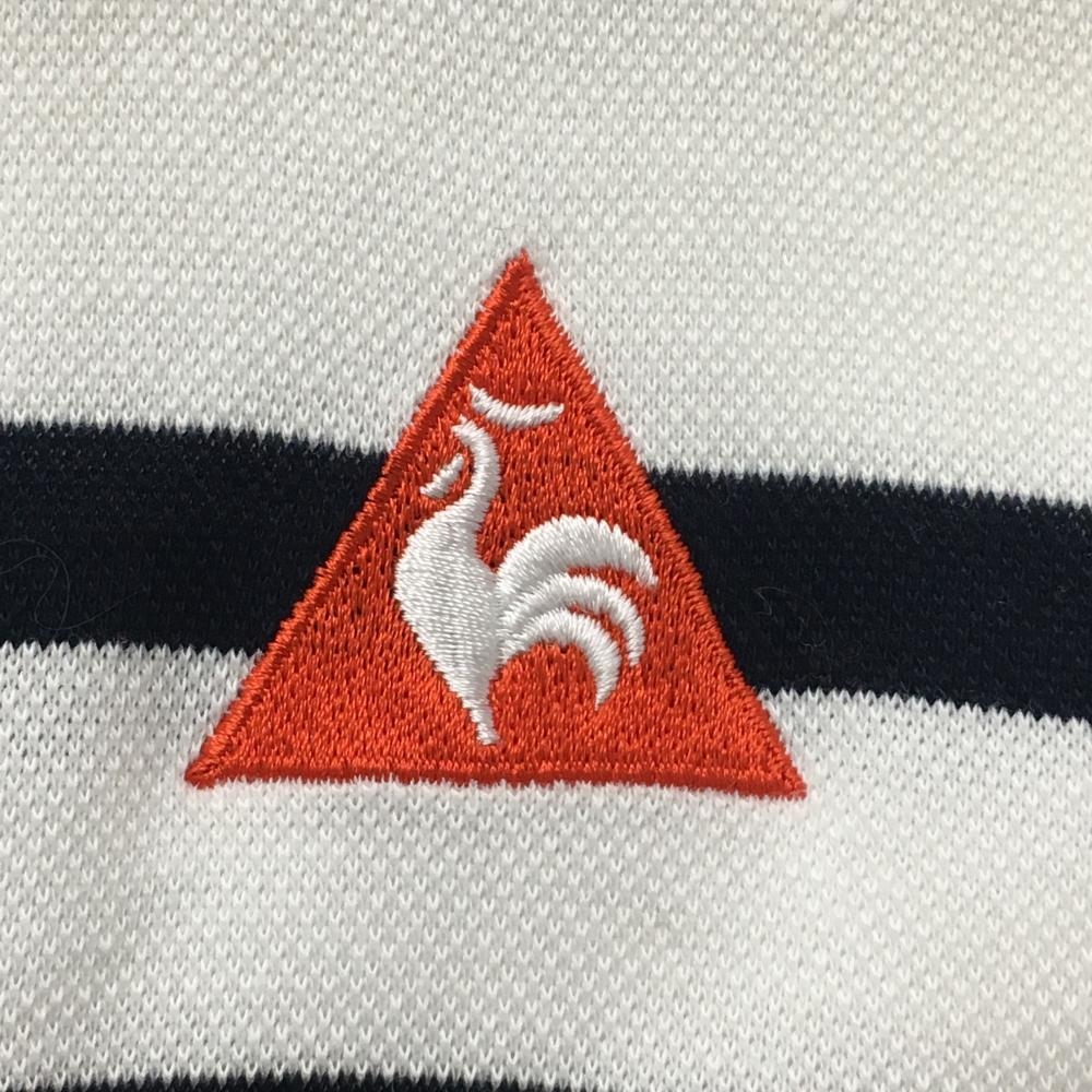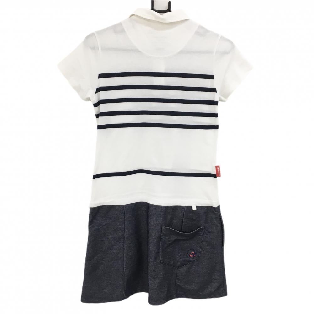 【美品】ルコック 半袖ポロワンピース 白×ネイビー 一部ボーダー ロゴ刺しゅう レディース M ゴルフウェア le coq sportif