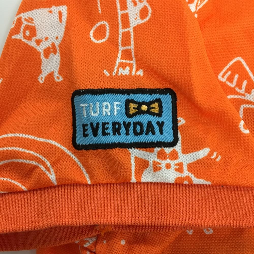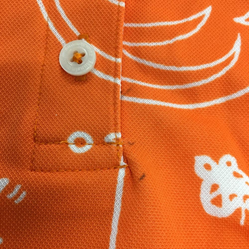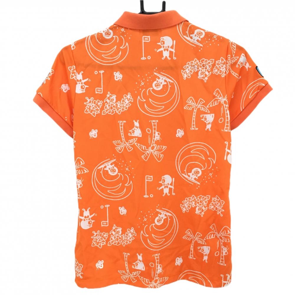 【超美品】マンシングウェア 半袖ポロシャツ オレンジ×白 ヤシの木柄 リトルピート レディース M ゴルフウェア Munsingwear