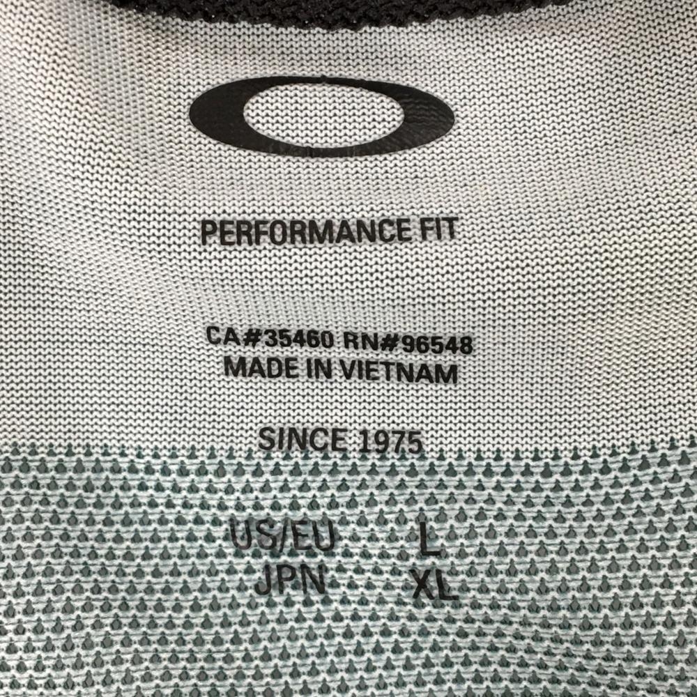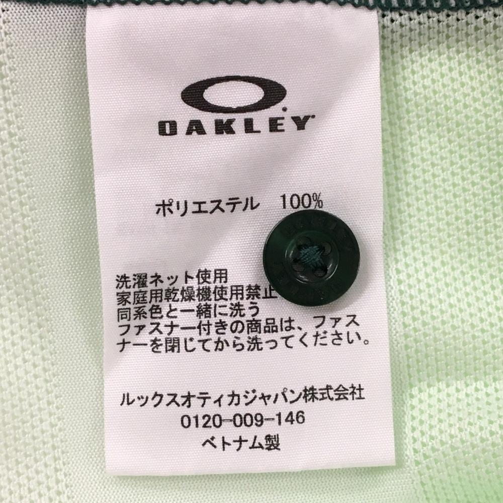 【超美品】オークリー 半袖ポロシャツ グリーン 前身頃下ライトグリーン ボーダー織生地 メンズ XL ゴルフウェア Oakley