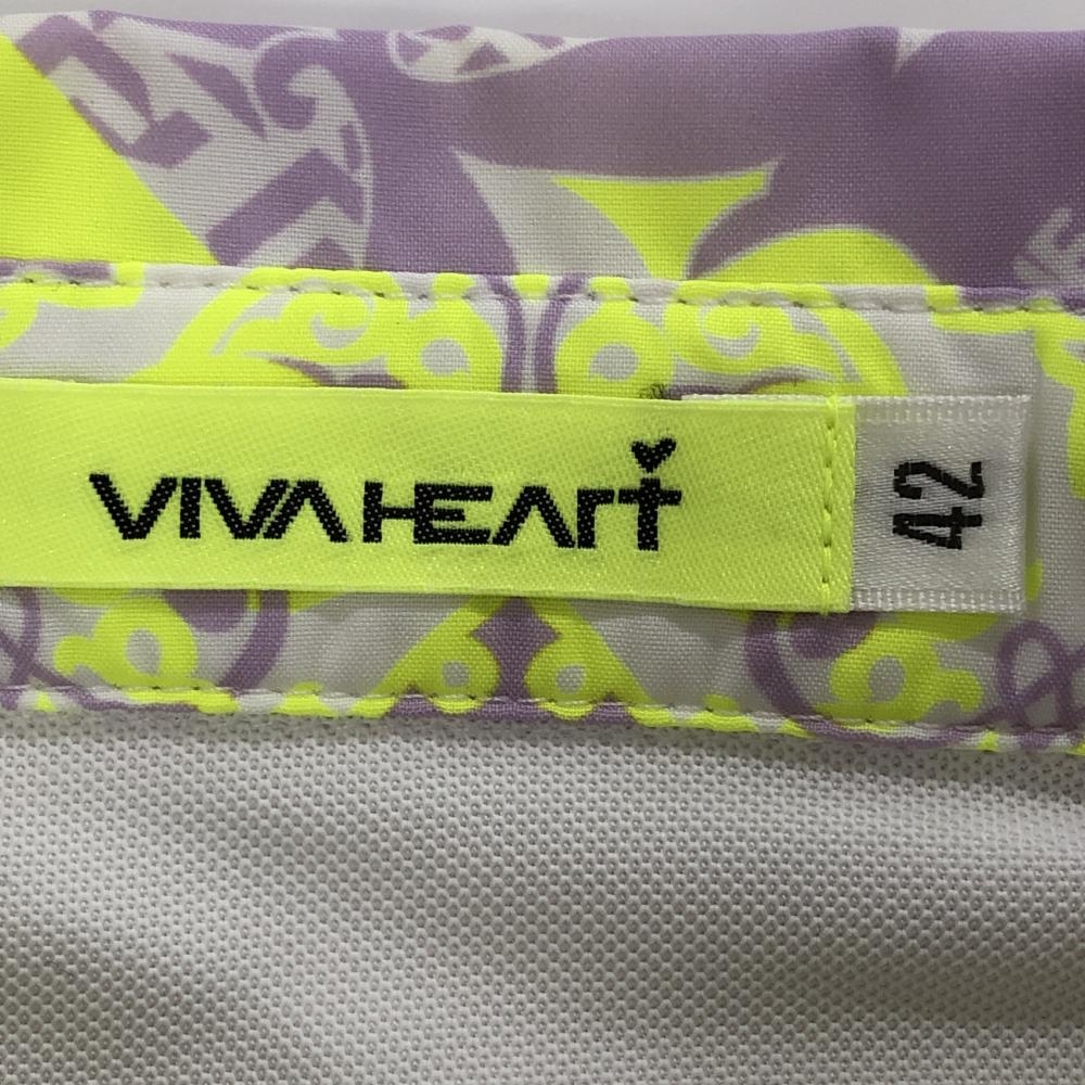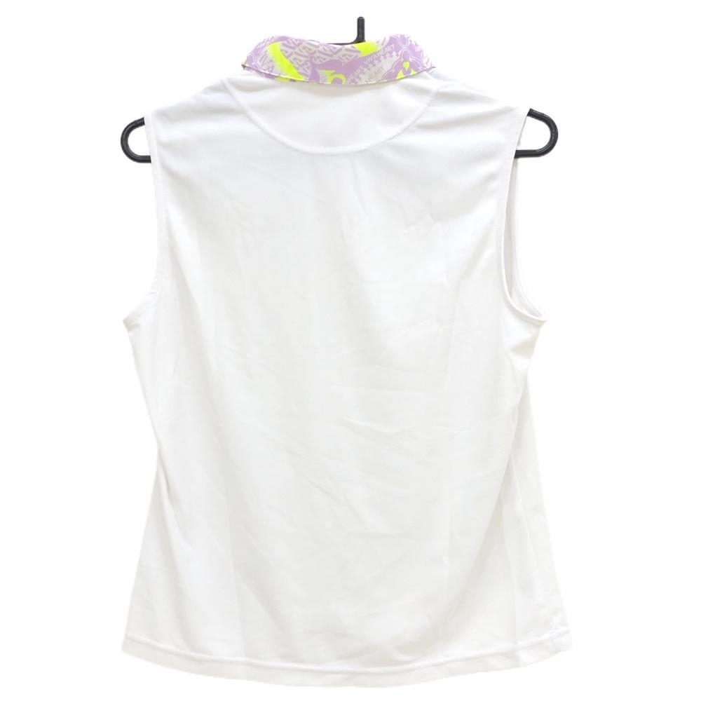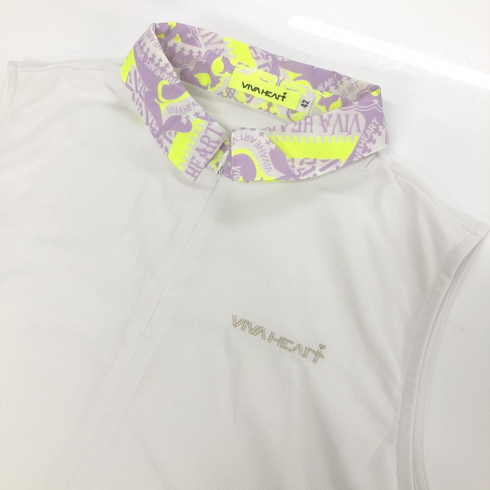 【超美品】ビバハート ノースリーブポロシャツ 白×ライトパープル ハーフジップ 襟総柄 レディース 42(L) ゴルフウェア VIVA HEART