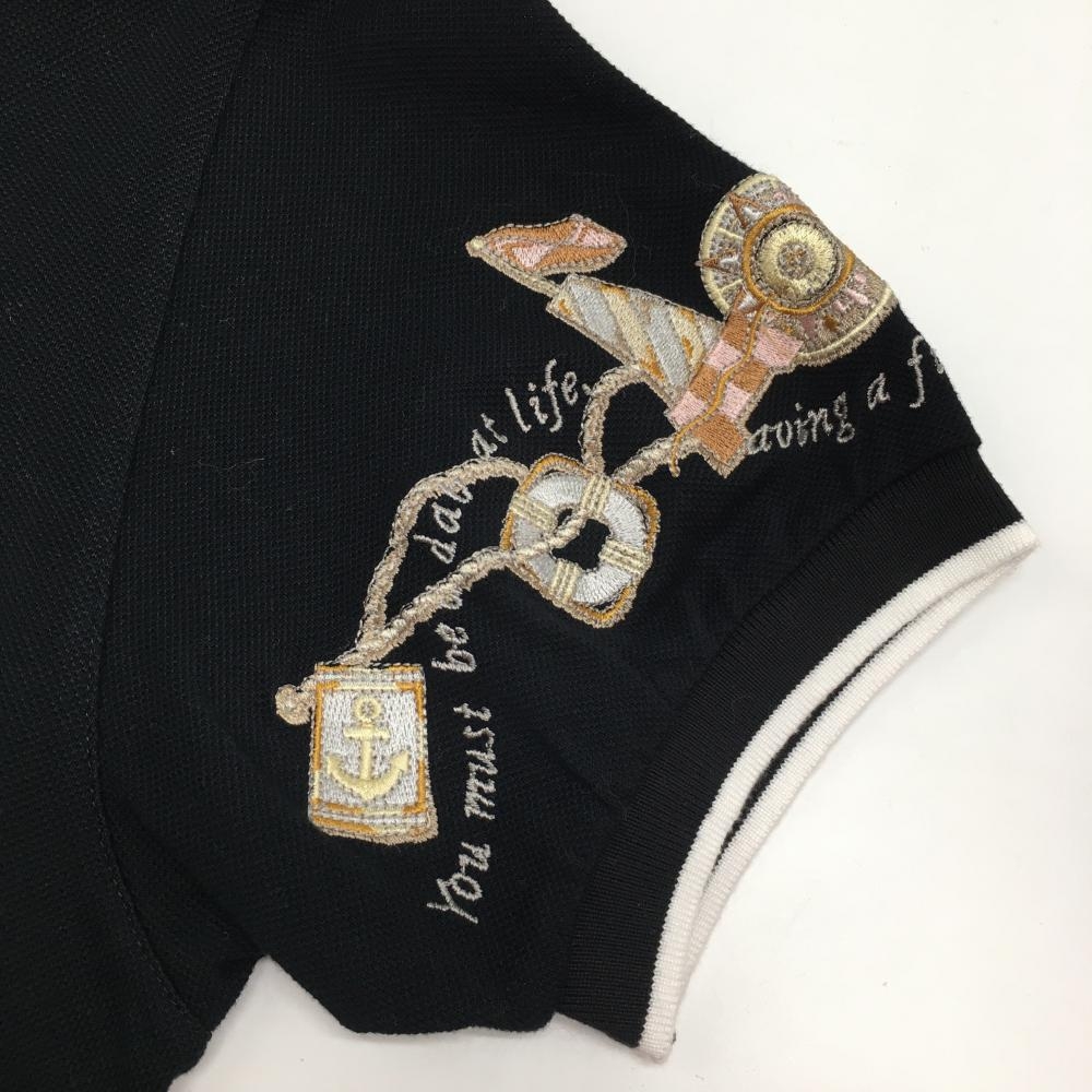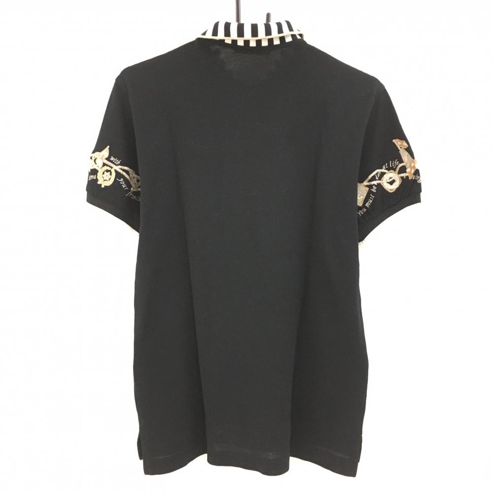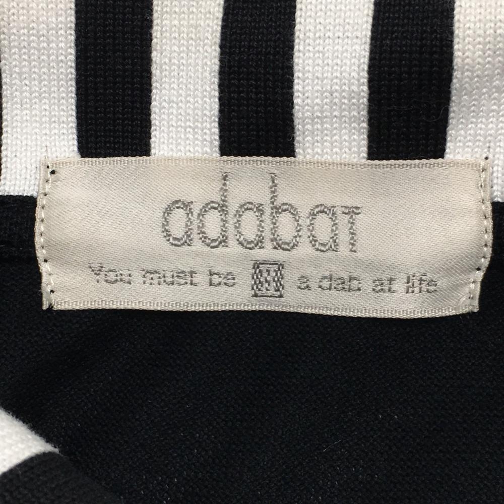 【超美品】アダバット 半袖ポロシャツ 黒×白 襟ストライプ 袖刺しゅう メンズ II(S) ゴルフウェア adabat