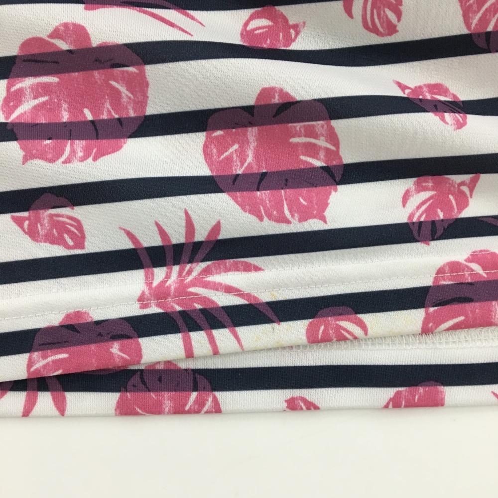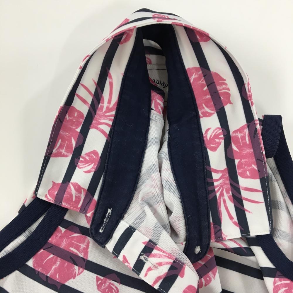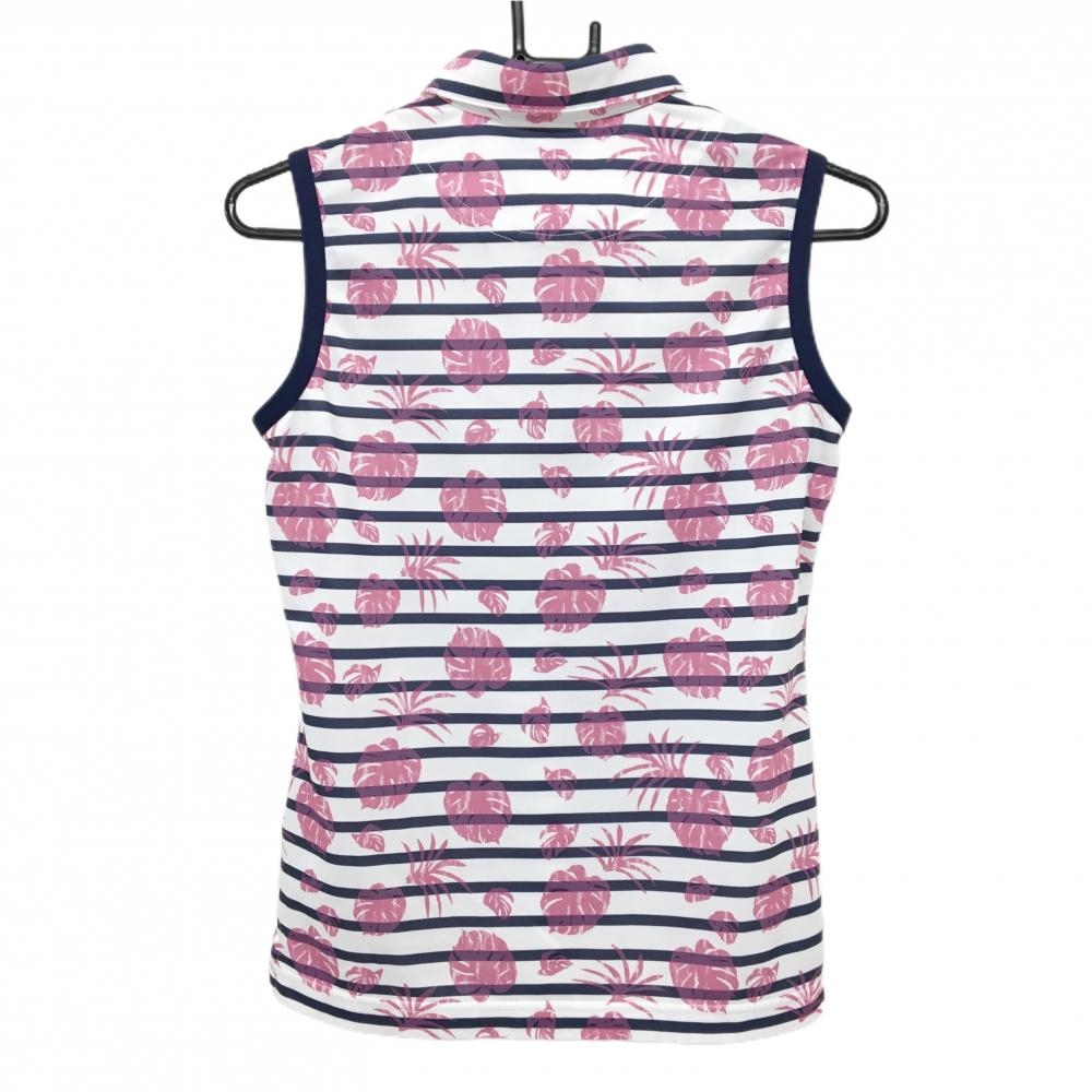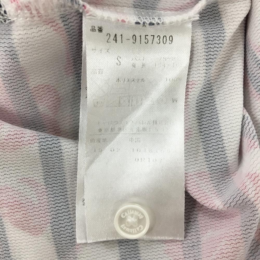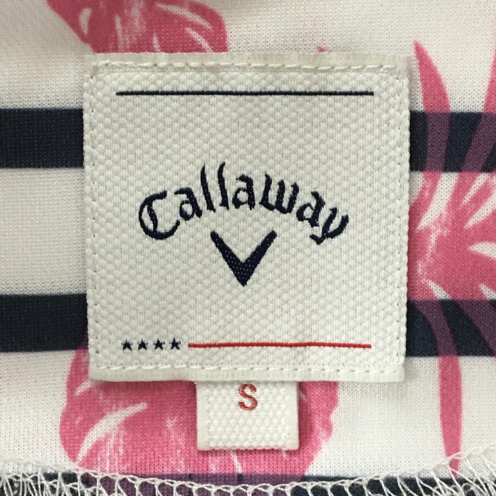 キャロウェイ ノースリーブポロシャツ 白×ピンク ボーダー リーフ柄 レディース S ゴルフウェア Callaway